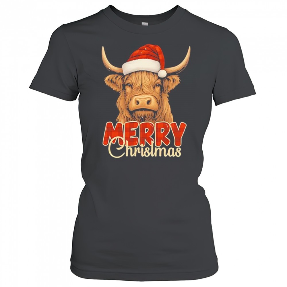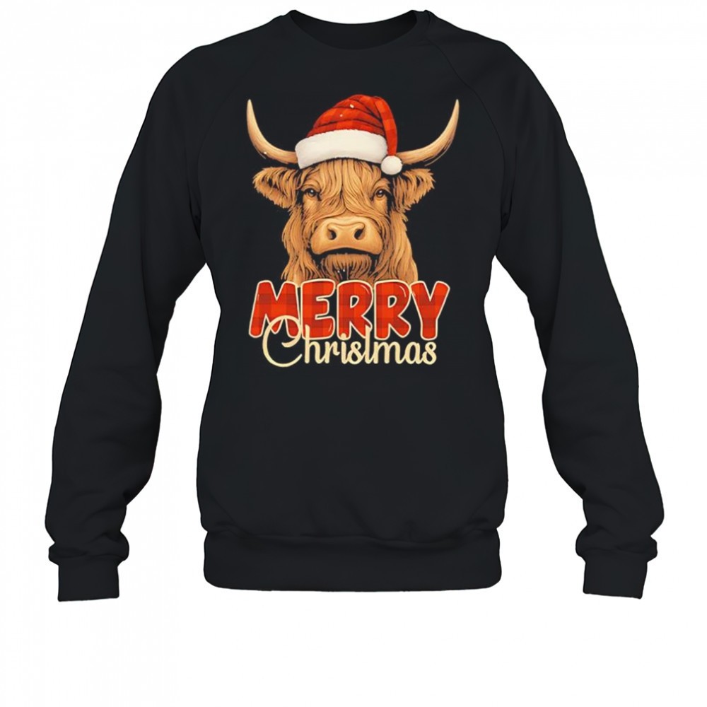 Highland Cow Santa hat Merry Christmas shirt