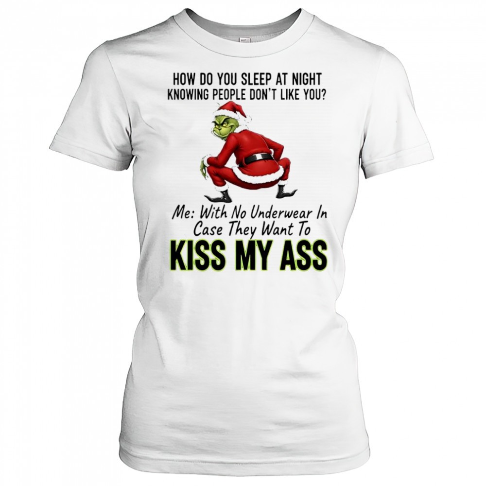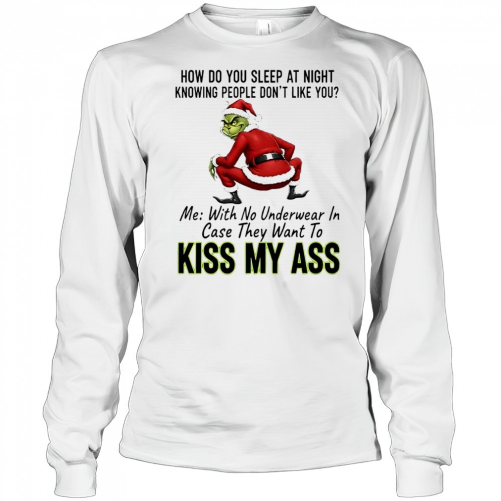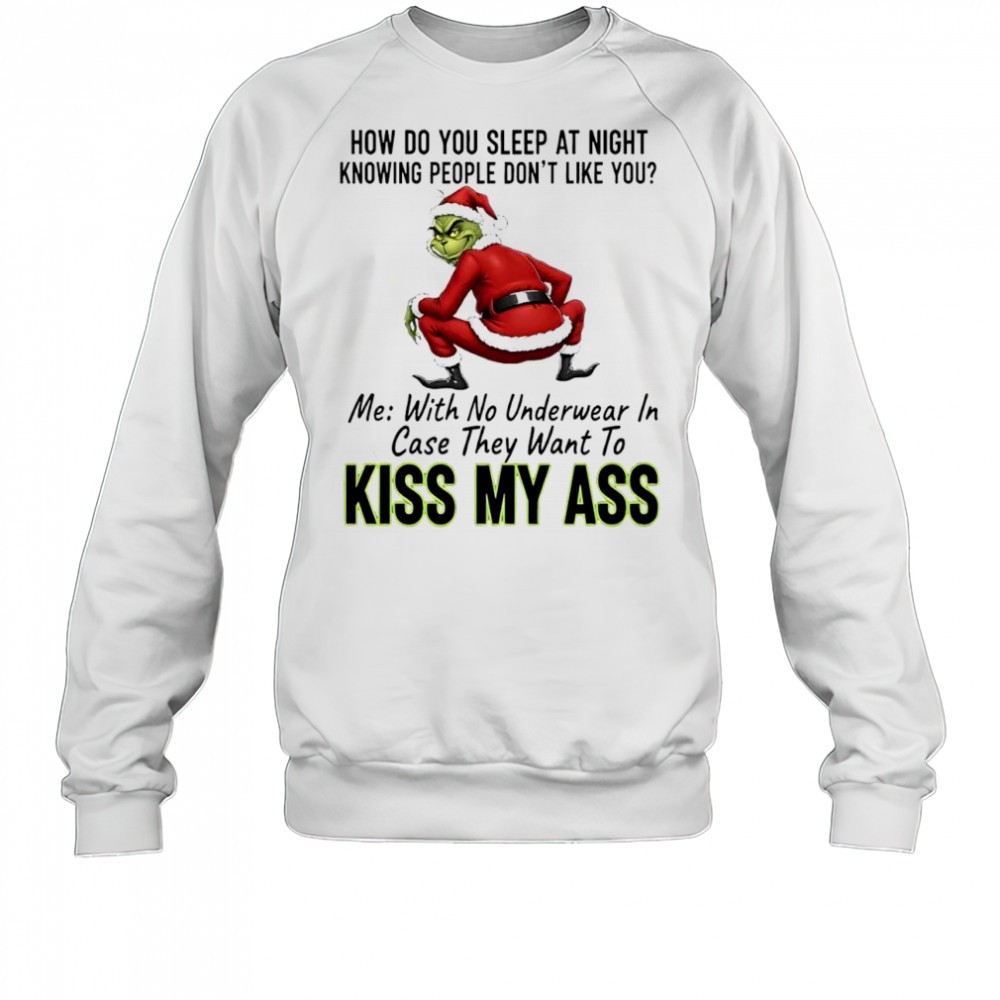How do you sleep at night knowing people dont like you me with no underwear in case they want to kiss Grinch ass shirt