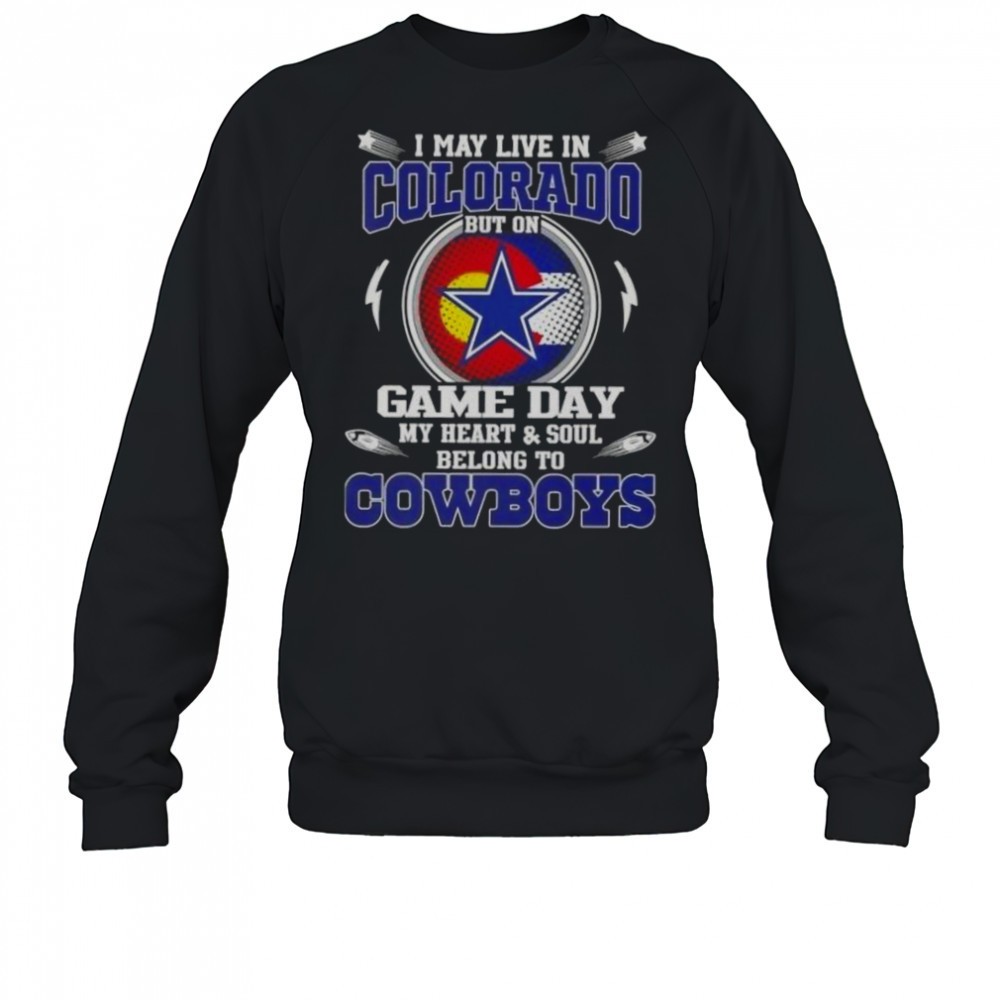 I May Live In Colorado But On Game Day My Heart And Soul Belongs To Dallas Cowboys Football T-Shirt