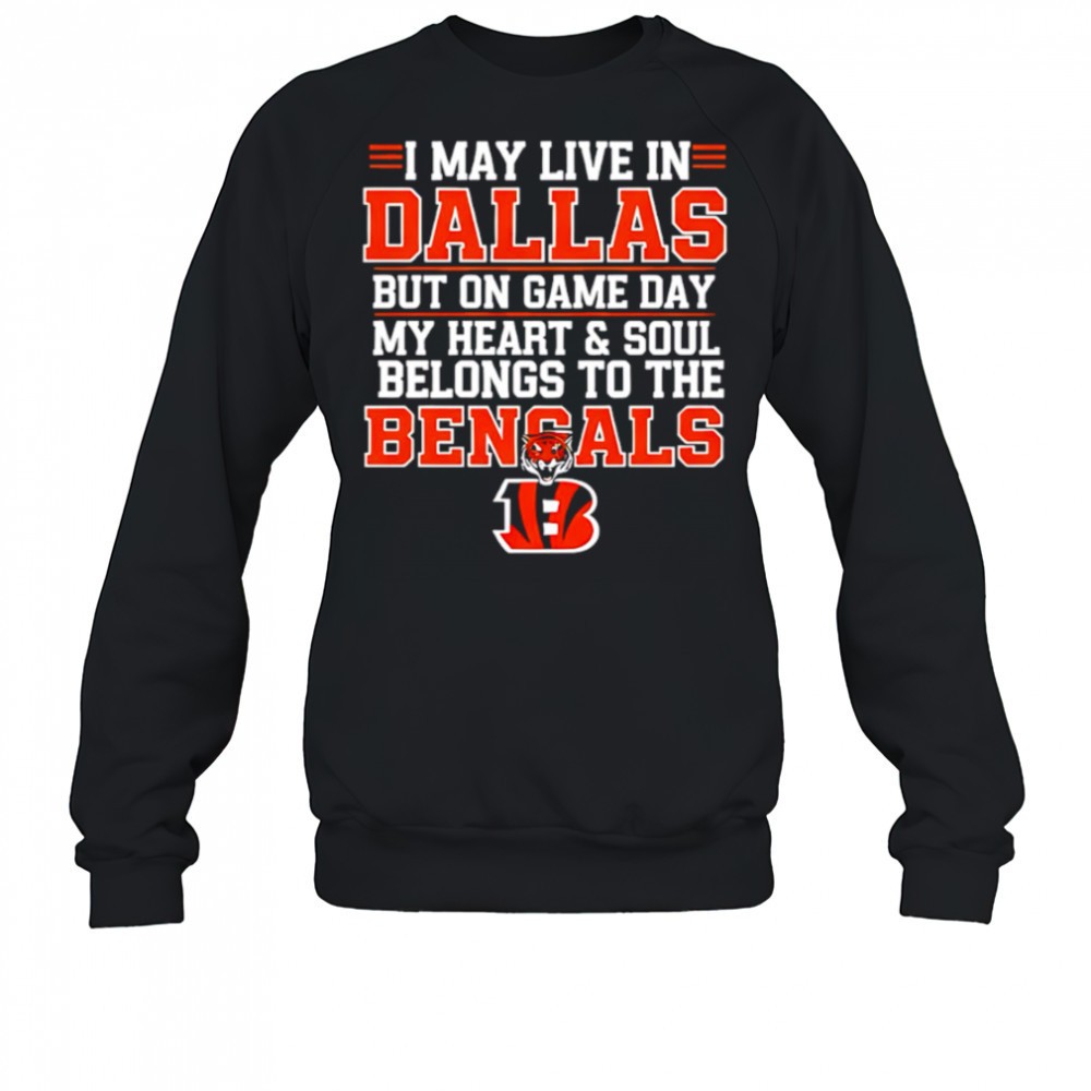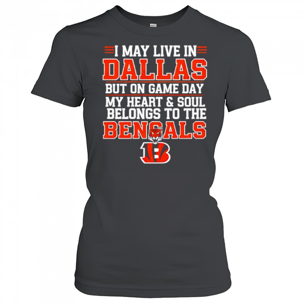 I may live in Dallas but on gameday my heart and soul belong to Cincinnati Bengals shirt