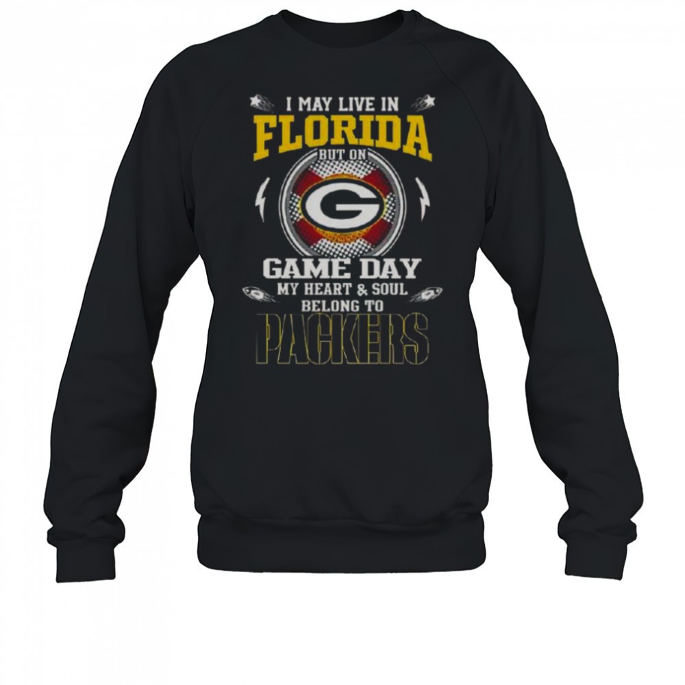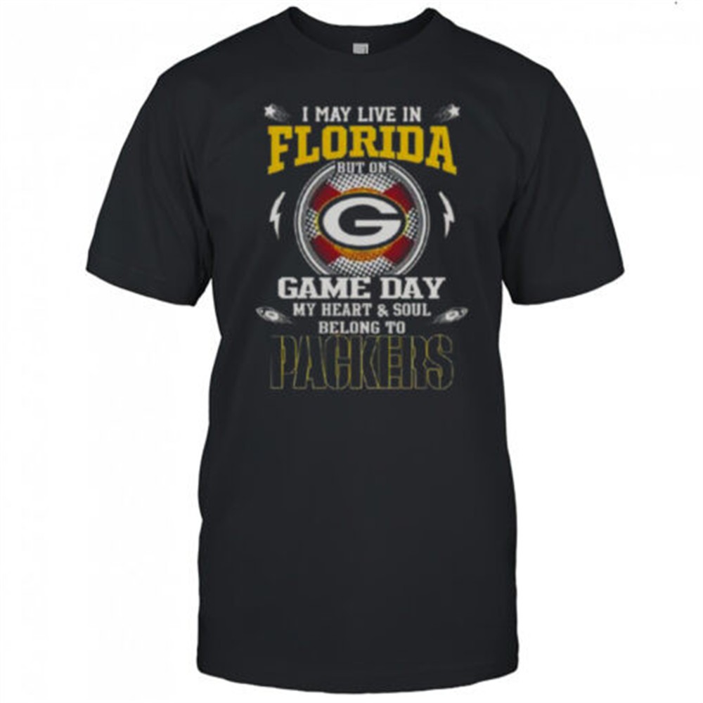 I May Live In Florida But On Game Day My Heart And Soul Belongs To Green Bay Packers T-Shirt