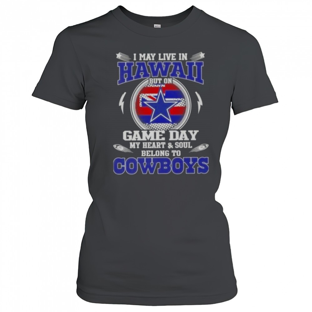 I May Live In Hawaii But On Game Day My Heart And Soul Belongs To Dallas Cowboys T-Shirt