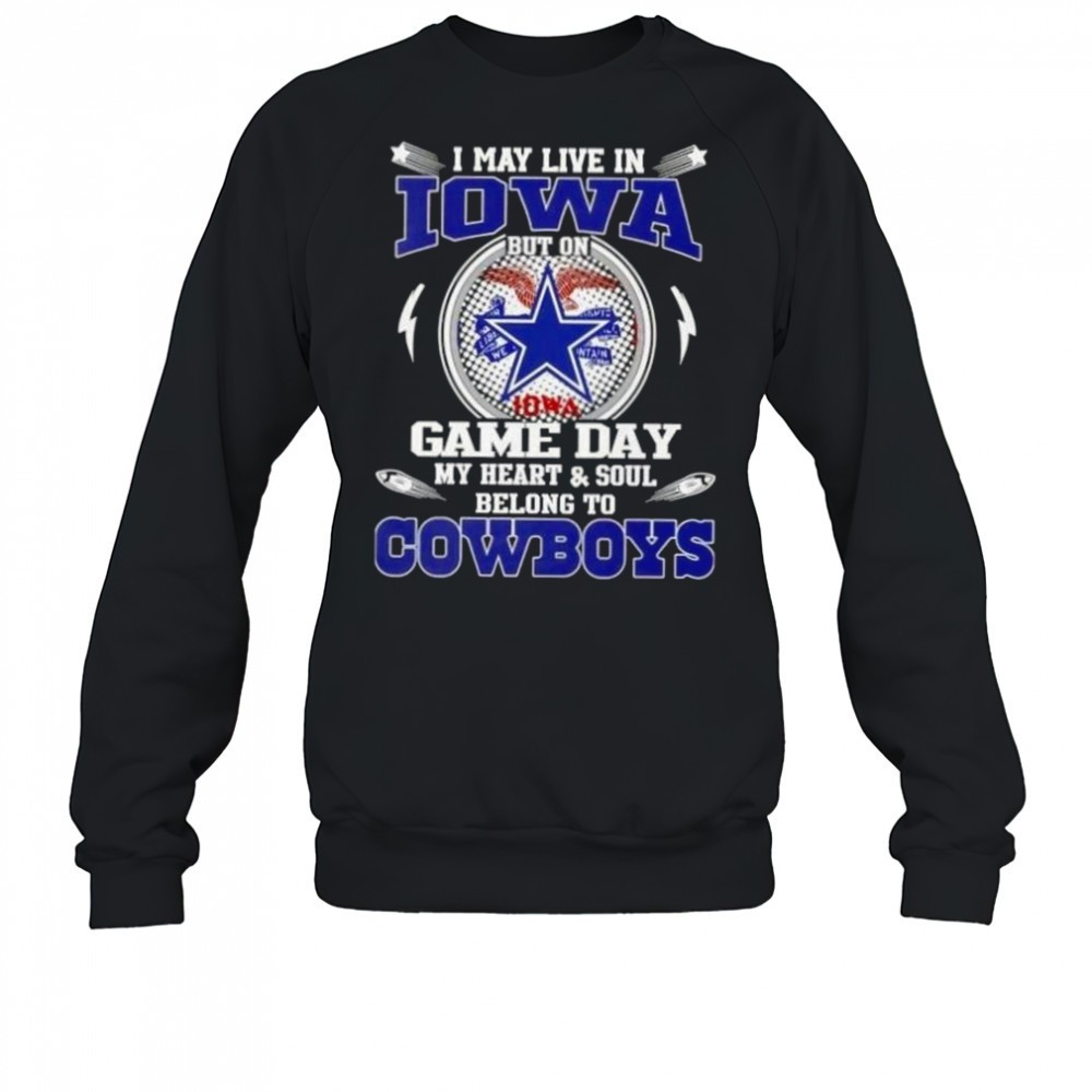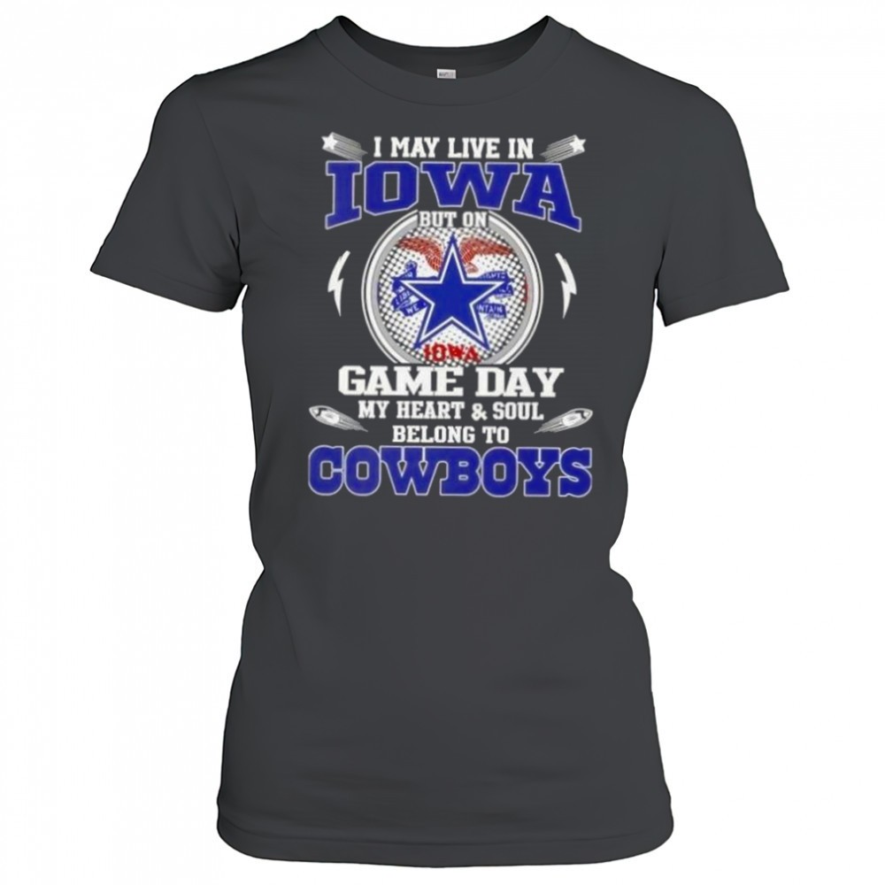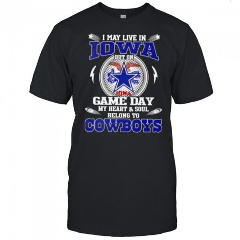 I May Live In Iowa But On Game Day My Heart And Soul Belongs To Dallas Cowboys Football T-Shirt