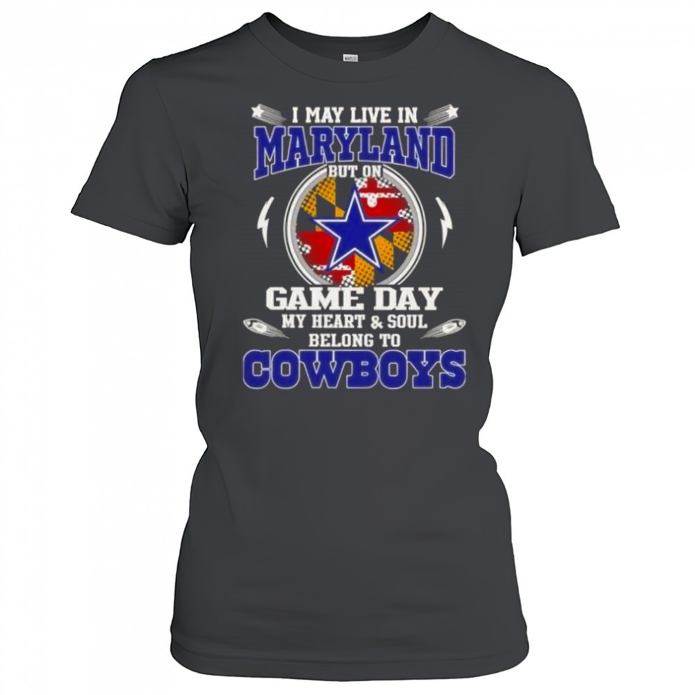 I May Live In Maryland But On Game Day My Heart And Soul Belongs To Dallas Cowboys T-Shirt