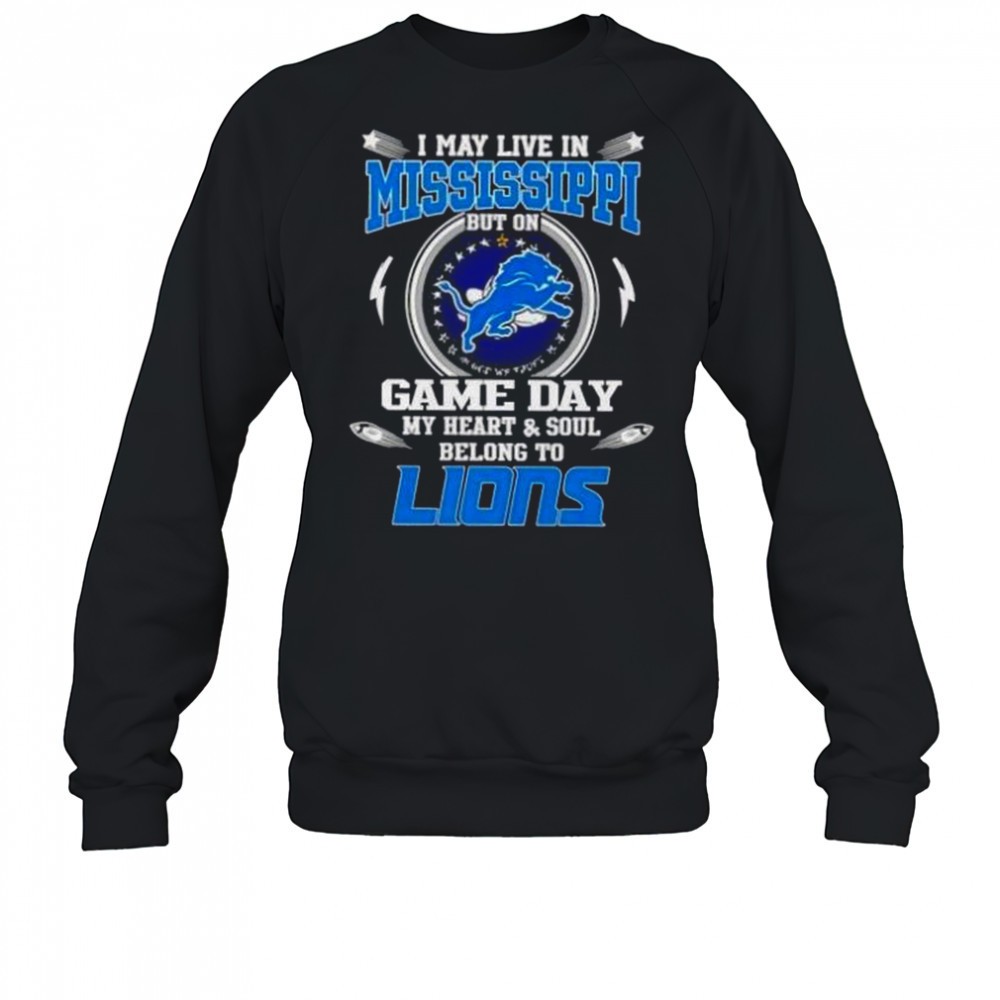 I May Live In Mississippi But On Game Day My Heart And Soul Belongs To Detroit Lions T-Shirt