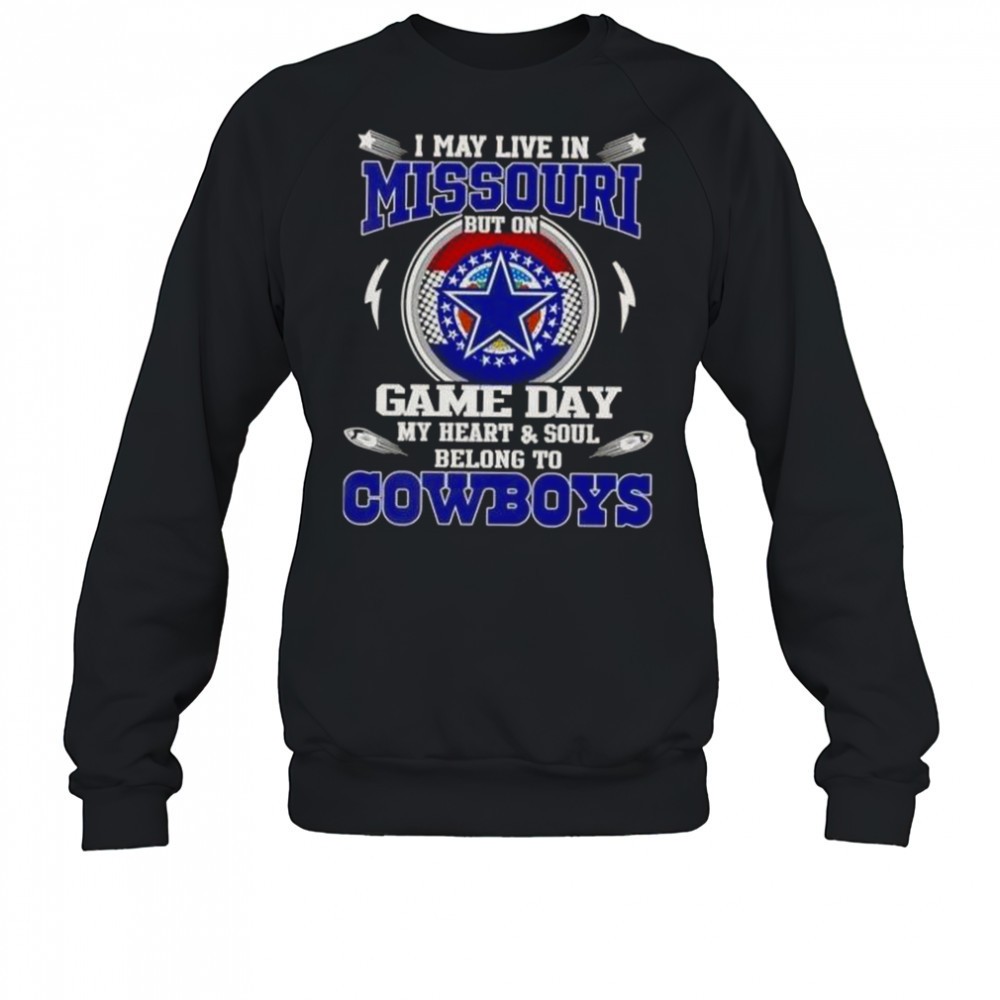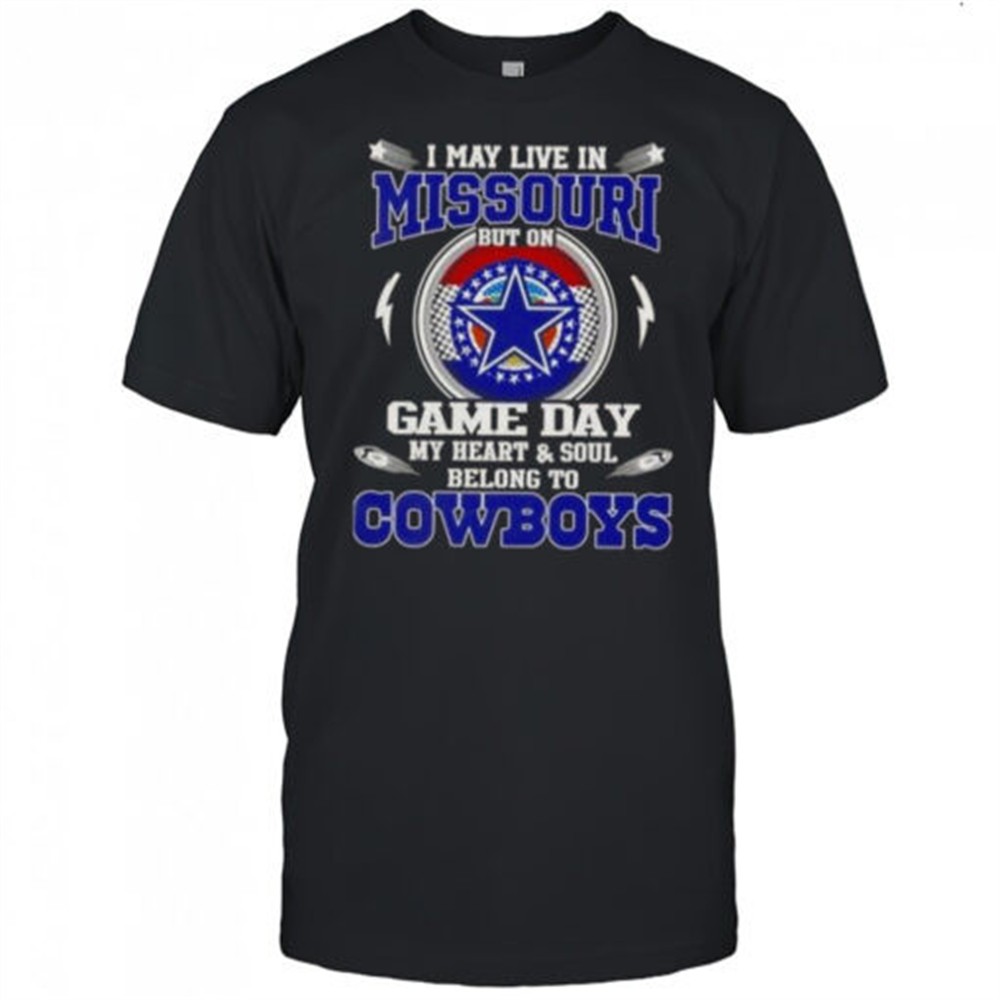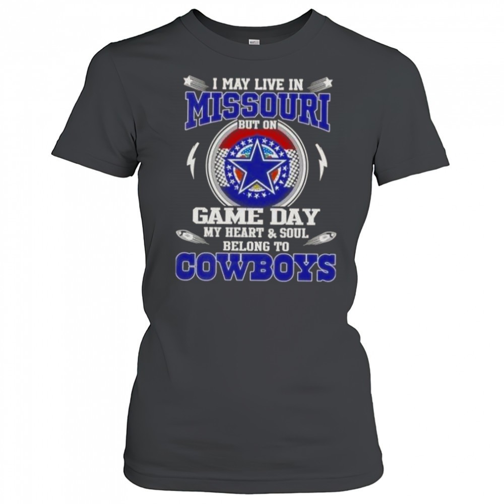 I May Live In Missouri But On Game Day My Heart And Soul Belongs To Dallas Cowboys T-Shirt