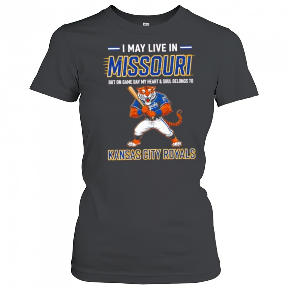 I may live in Missouri but on game day my heart and soul belongs to the Kansas City Royals shirt
