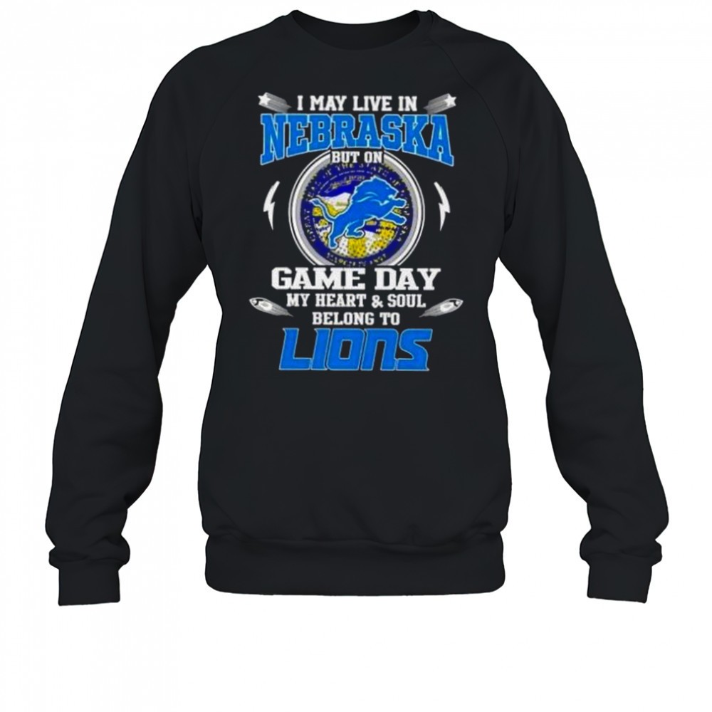I May Live In Nebraska But On Game Day My Heart And Soul Belongs To Detroit Lions T-Shirt