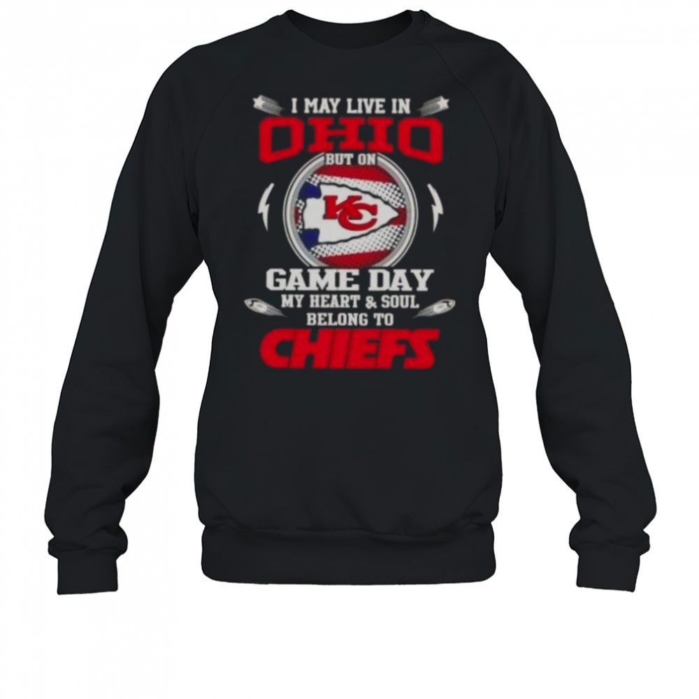I May Live In Ohio But On Game Day My Heart And Soul Belongs To Kansas City Chiefs T-Shirt