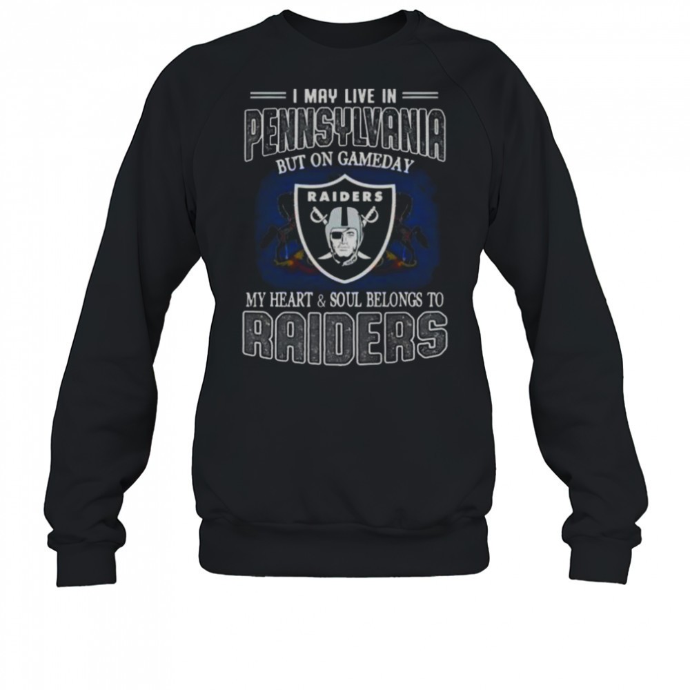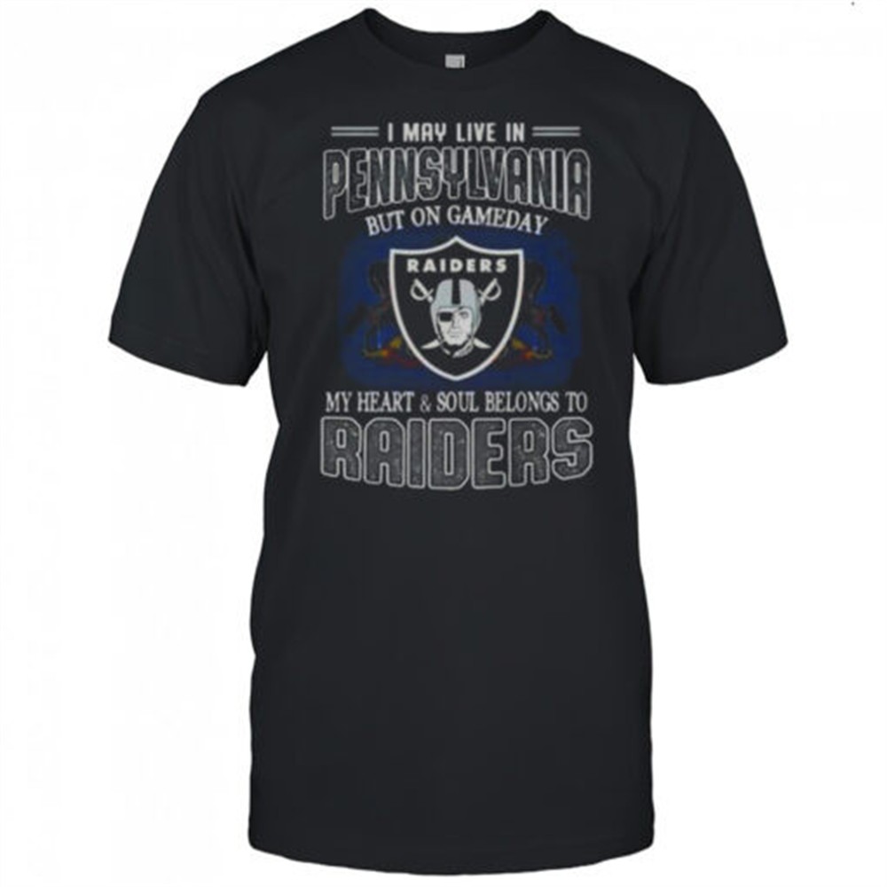 I May Live In Pennsylvania But On Gameday My Heart And Soul Belongs To Raiders T-Shirt