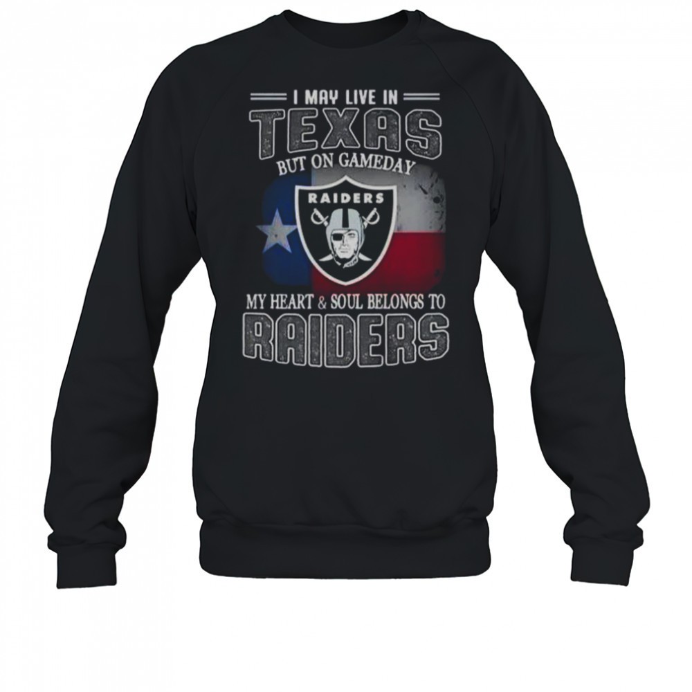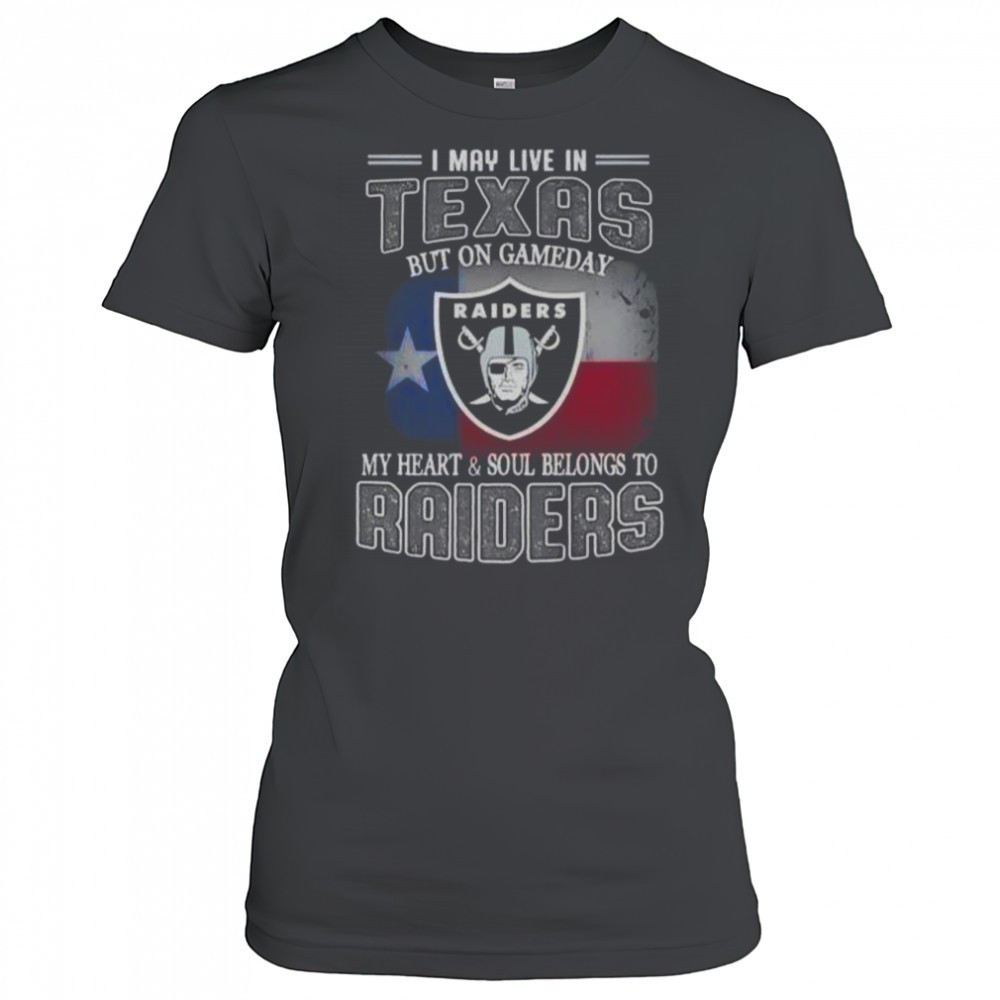 I May Live In Texas But On Gameday My Heart And Soul Belongs To Raiders T-Shirt