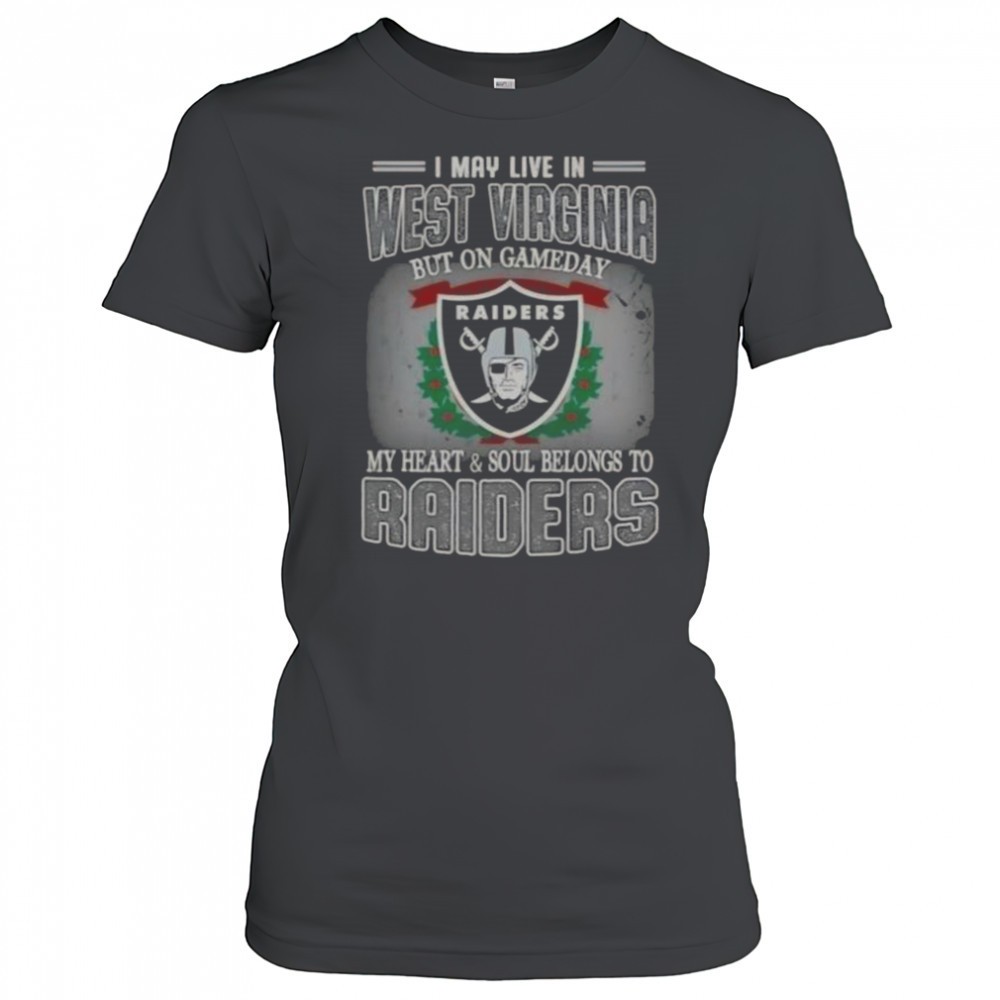 I May Live In West Virginia But On Gameday My Heart And Soul Belongs To Raiders T-Shirt