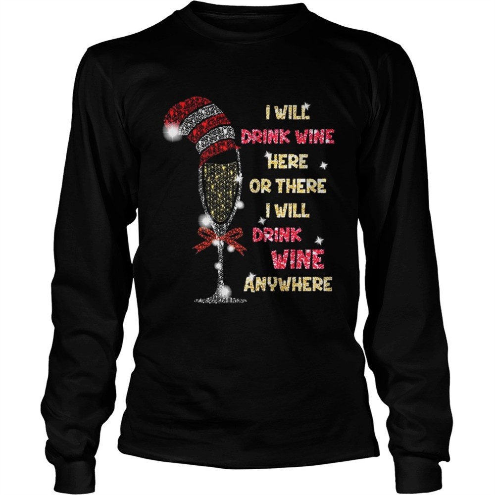 I will drink wine here or there I will drink wine anywhere christmas shirt
