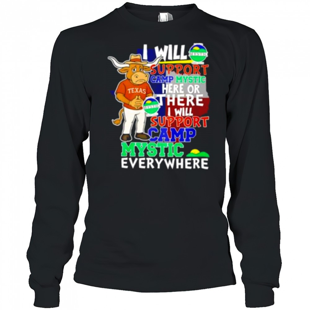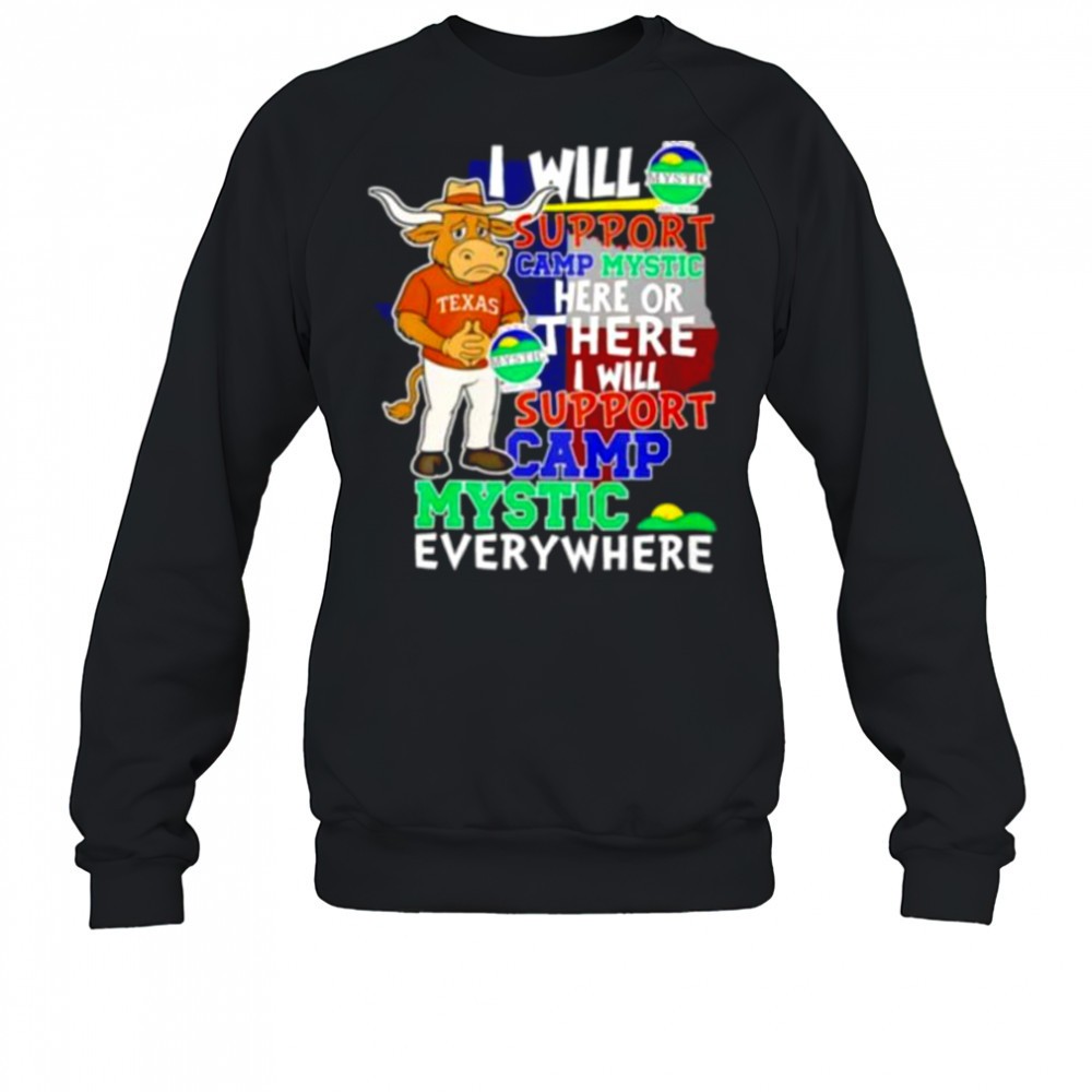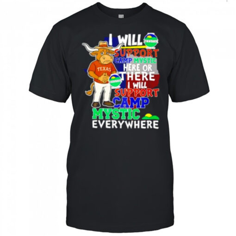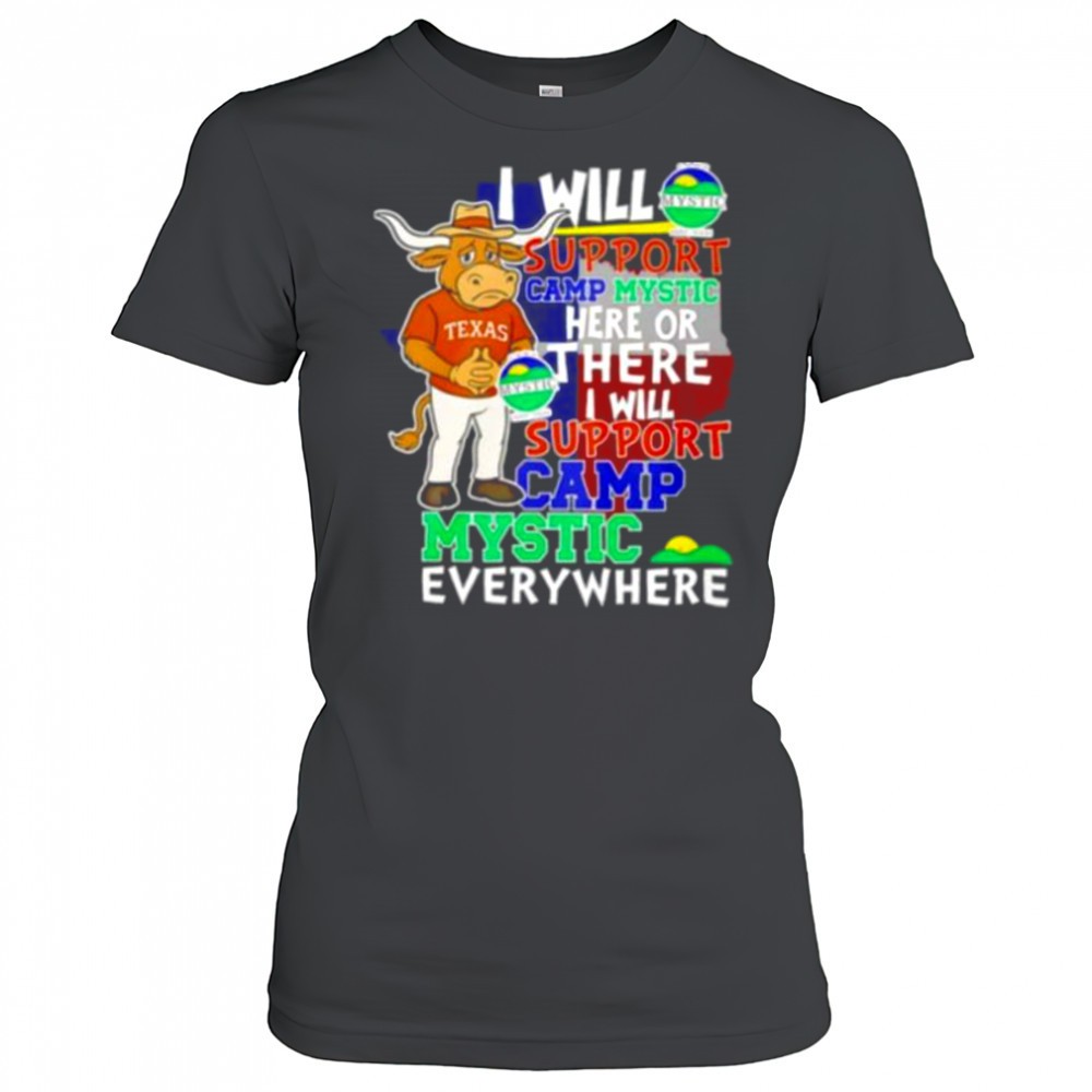 I will support Camp Mystic here or there I will support Camp Mystic everywhere Texas Longhorns Bevo mascot shirt