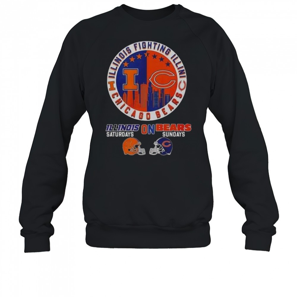 Illinois Fighting And Chicago Bears Saturdays On Sundays City Skyline Logo T-Shirt