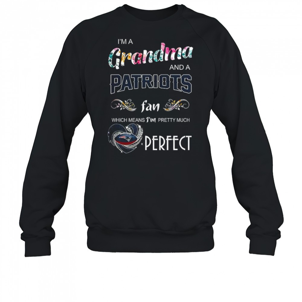 Im a grandma and a New England Patriots fan which means Im pretty much perfect diamond heart shirt
