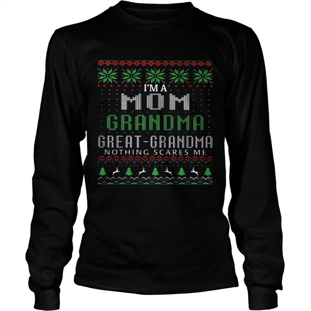 Im A Mom Grandma Great Grandma Nothing Scares Me Ugly Christmas shirt