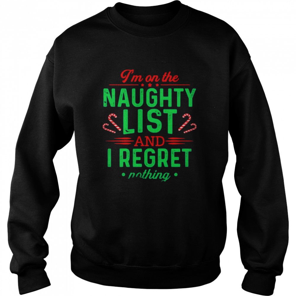 Im On The Naughty List And I Regret Nothing Christmas shirt