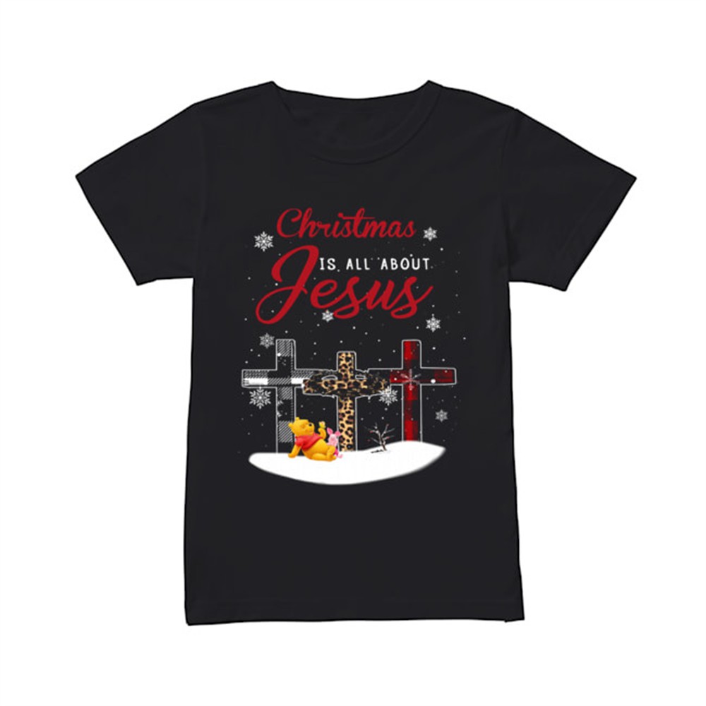 Jesus is the reason for the season christmas cross Pooh and Piglet shirt