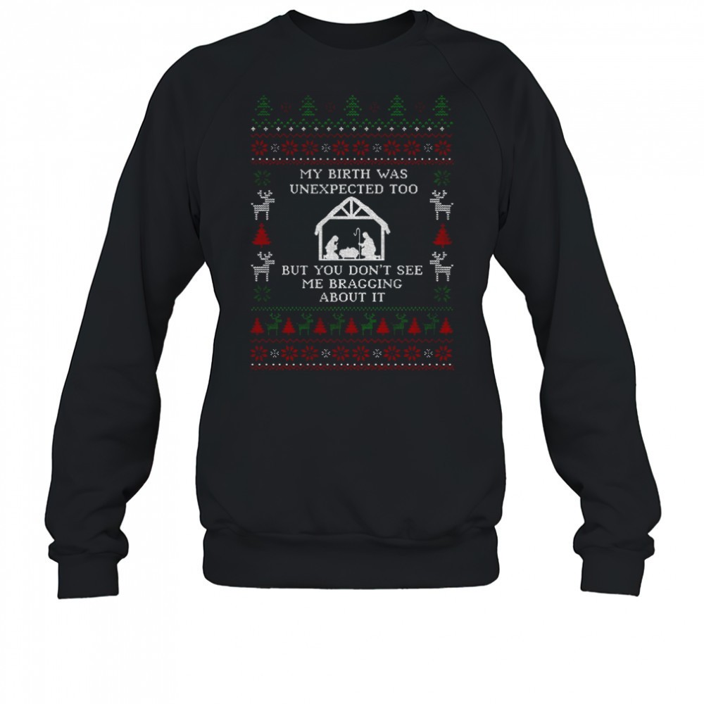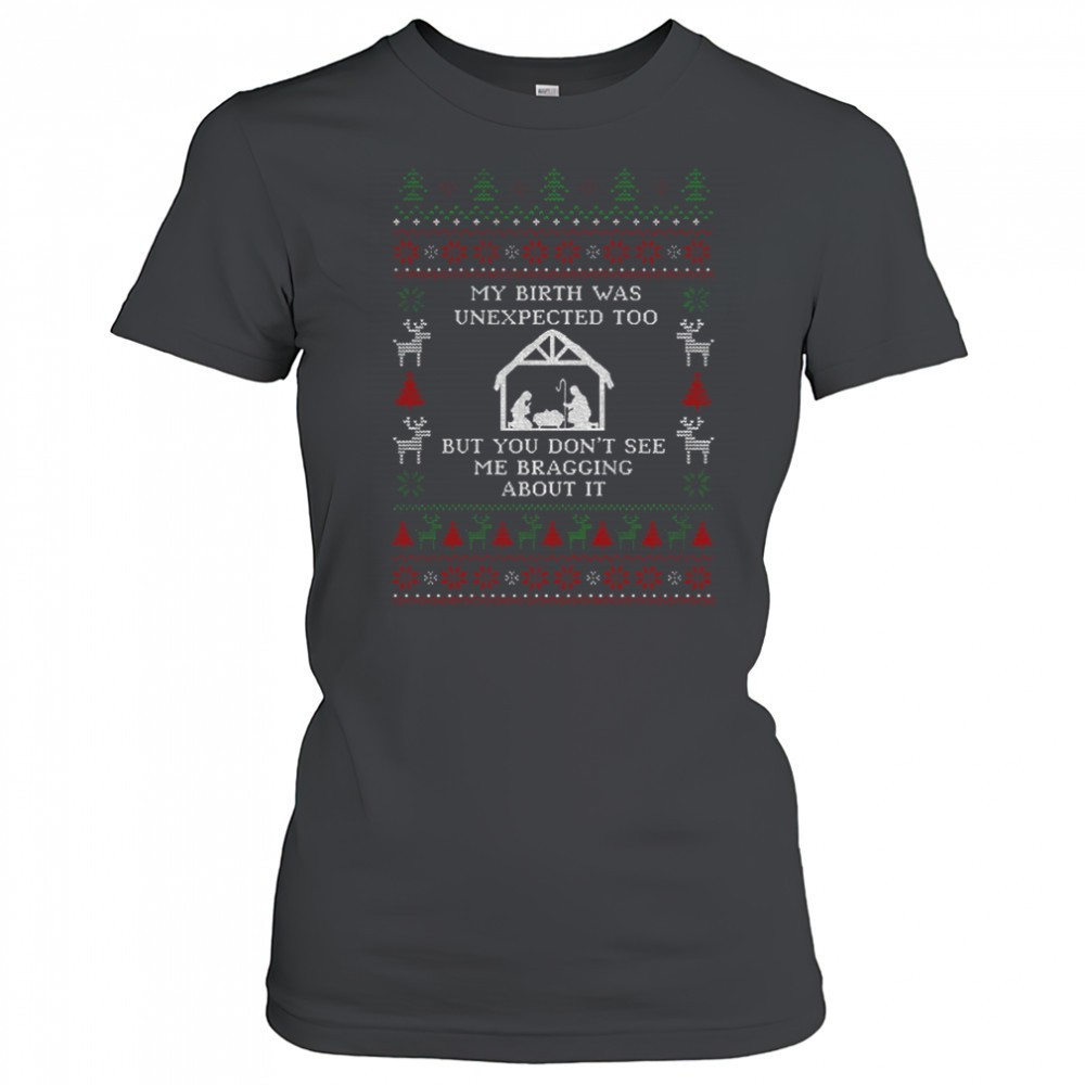 Jesus my birth was unexpected too but you dont see me bragging about it Merry Christmas shirt