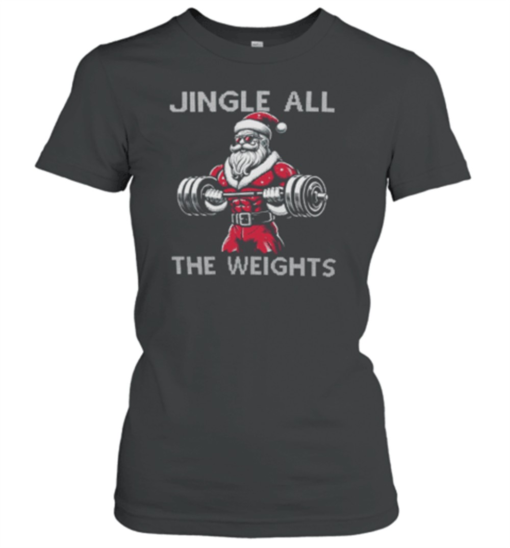 Jingle All The Weights Santa Weightlifting Workout Christmas T-Shirt