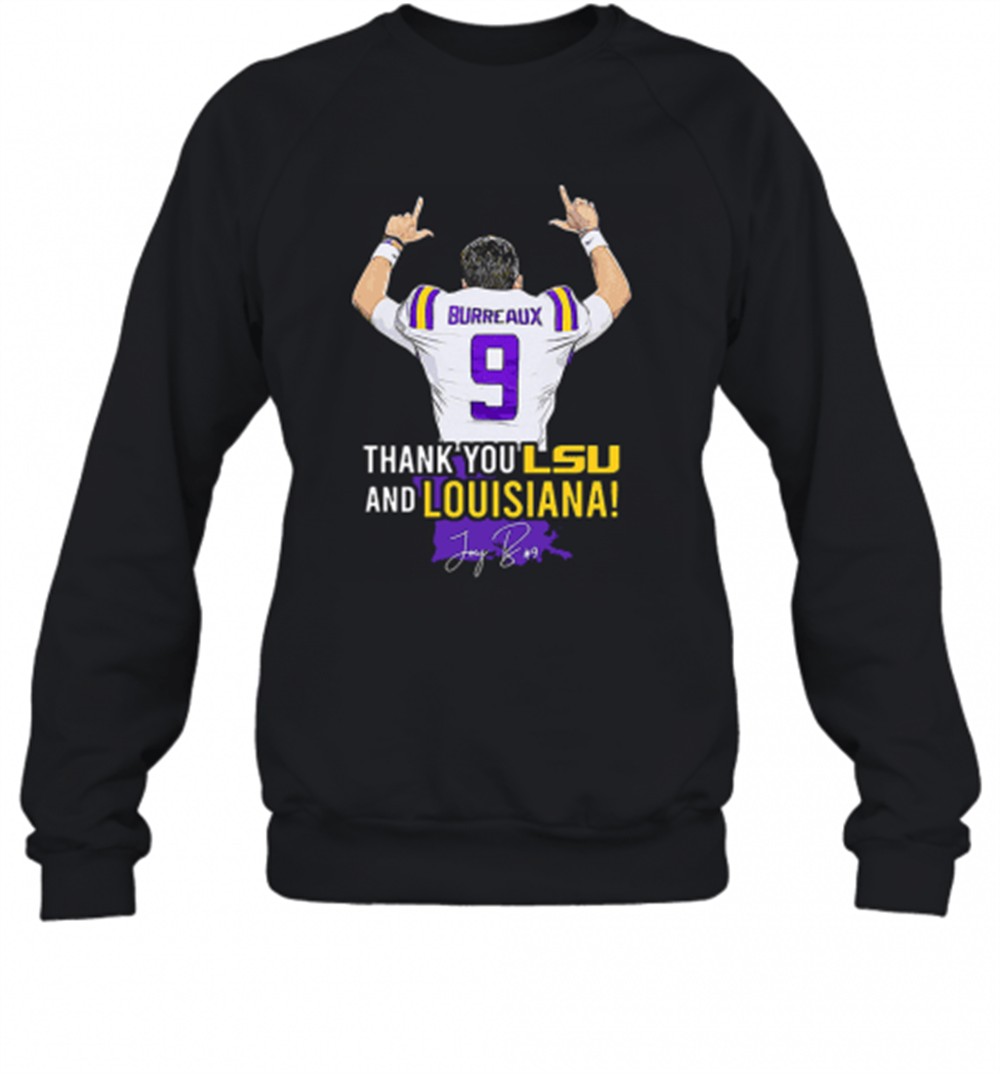 Joe Burrow Bureaux Thank You Lsu And Louisiana Signature T-Shirt