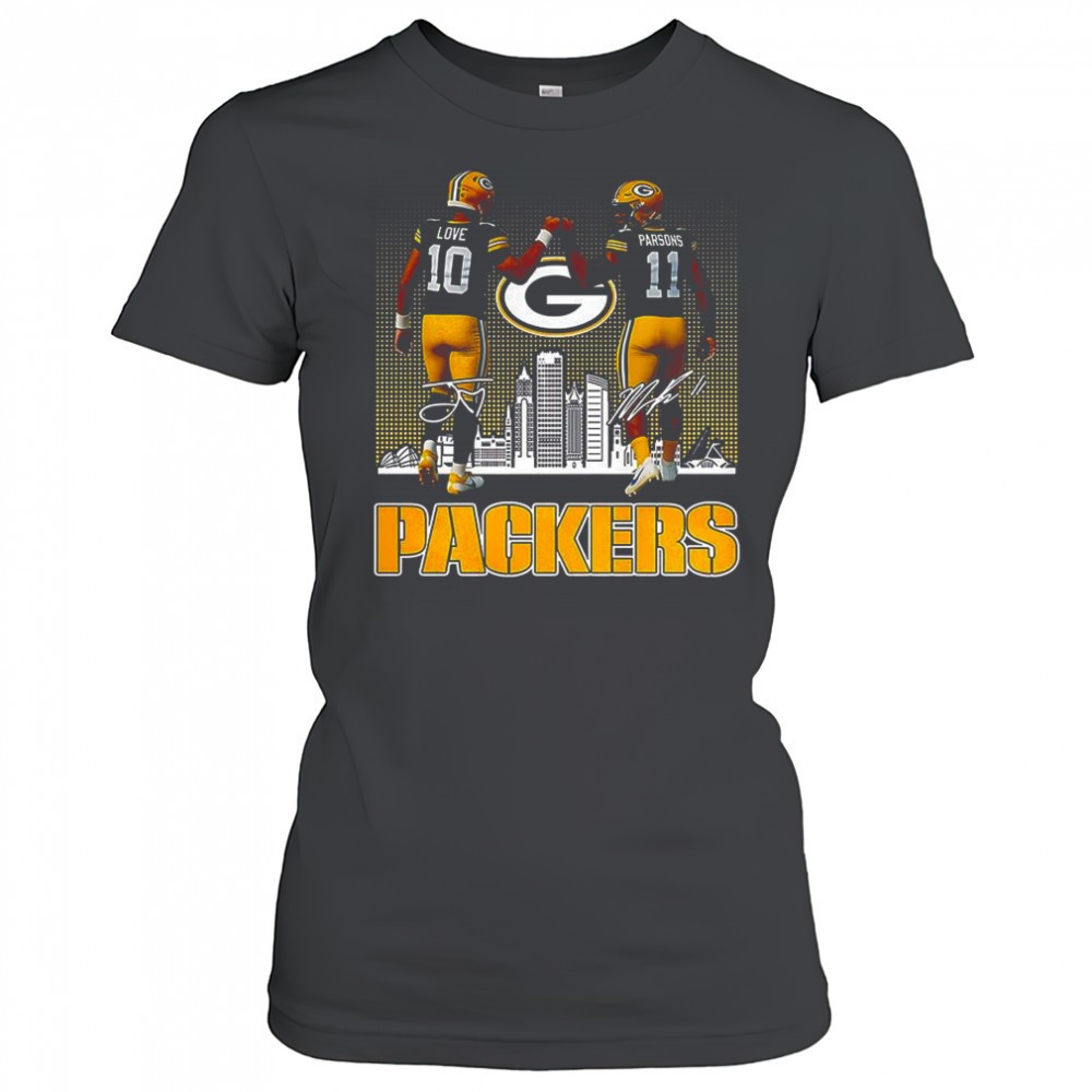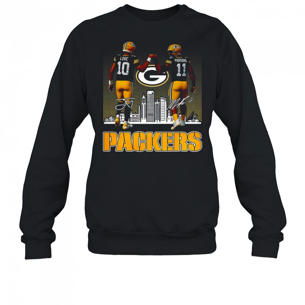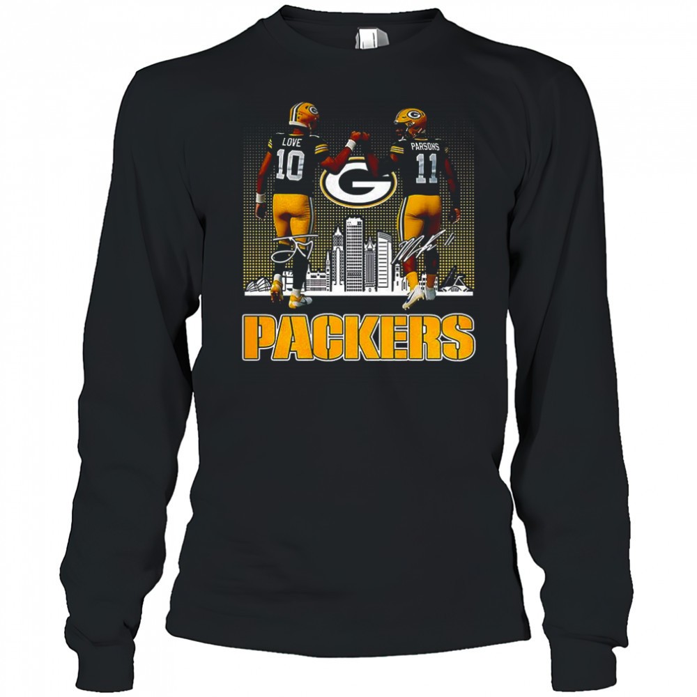 Jordan Love touch hands Micah Parsons Green Bay Packers football skyline signature shirt