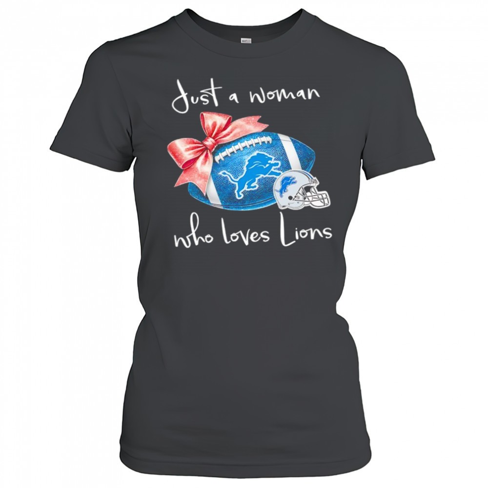 Just a woman who loves Detroit Lions pink bow helmet shirt