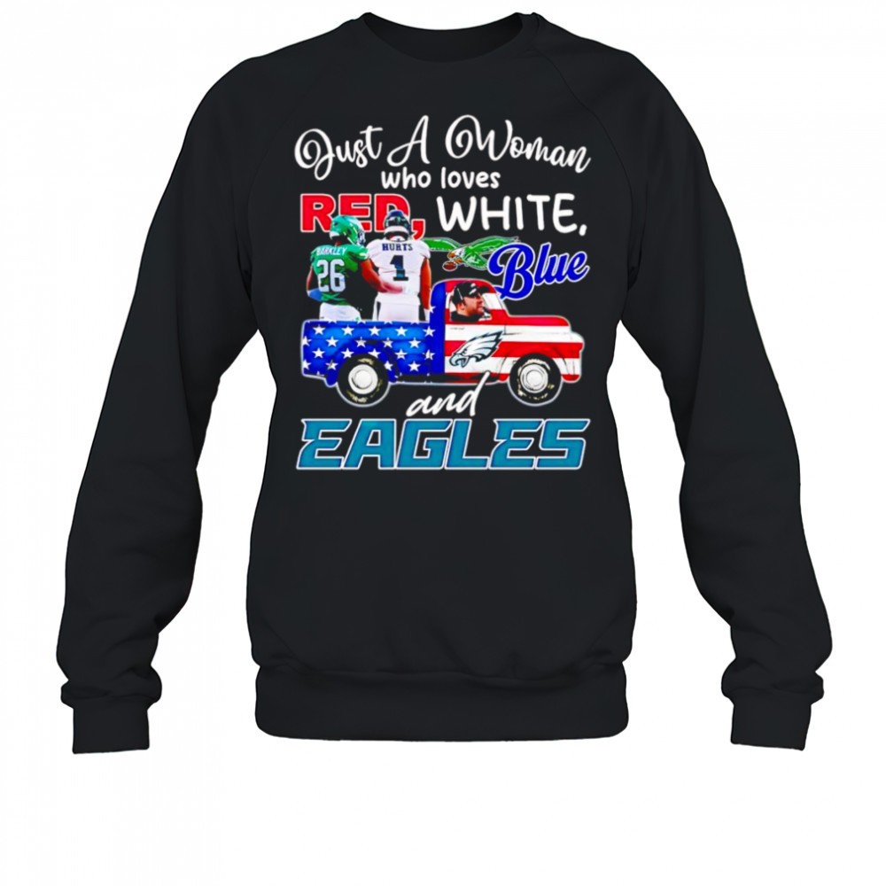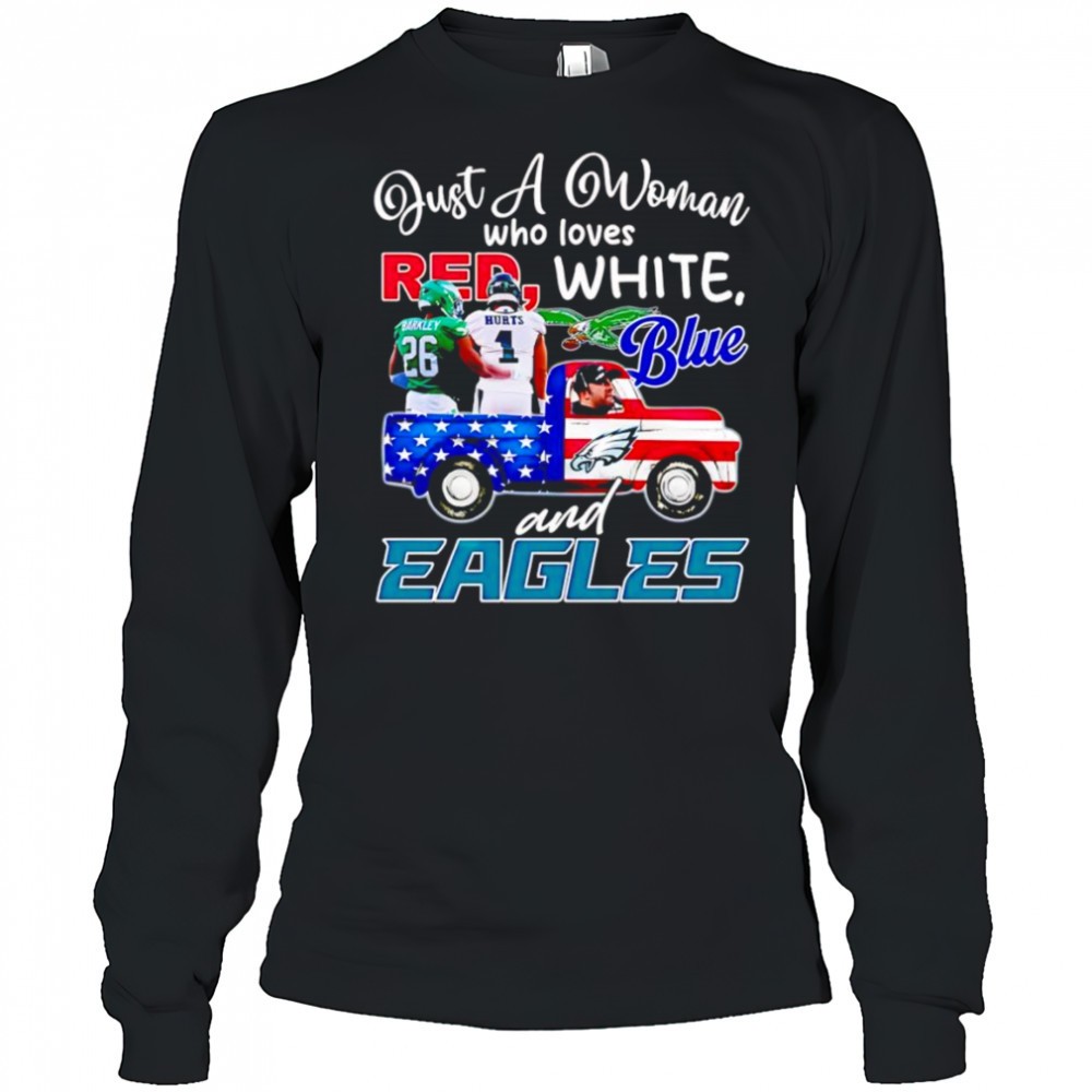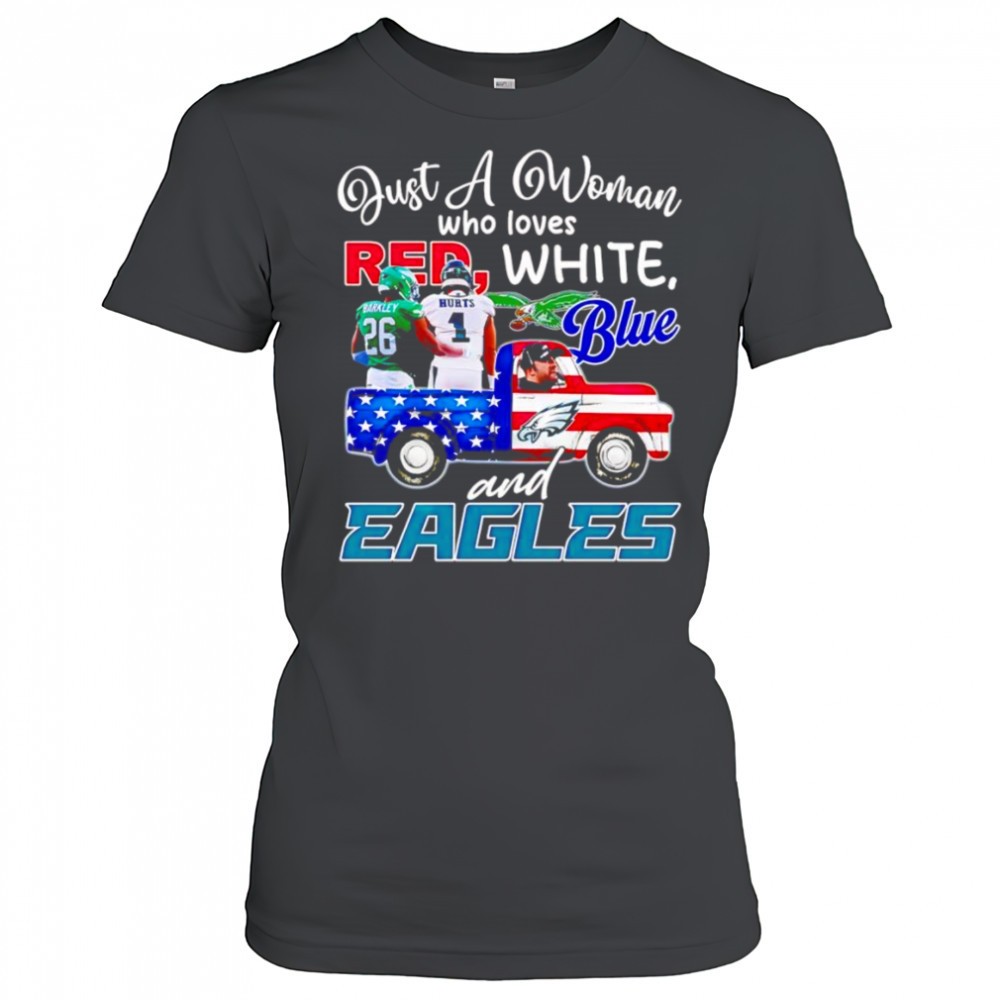 Just a woman who loves red white blue and Eagles Barkley Hurts shirt
