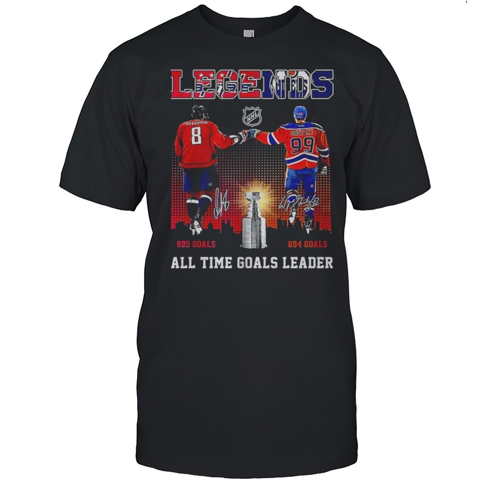 Legends NHL Alex Ovechkin And Wayne Gretzky All Time Goals Leader Signatures Shirt