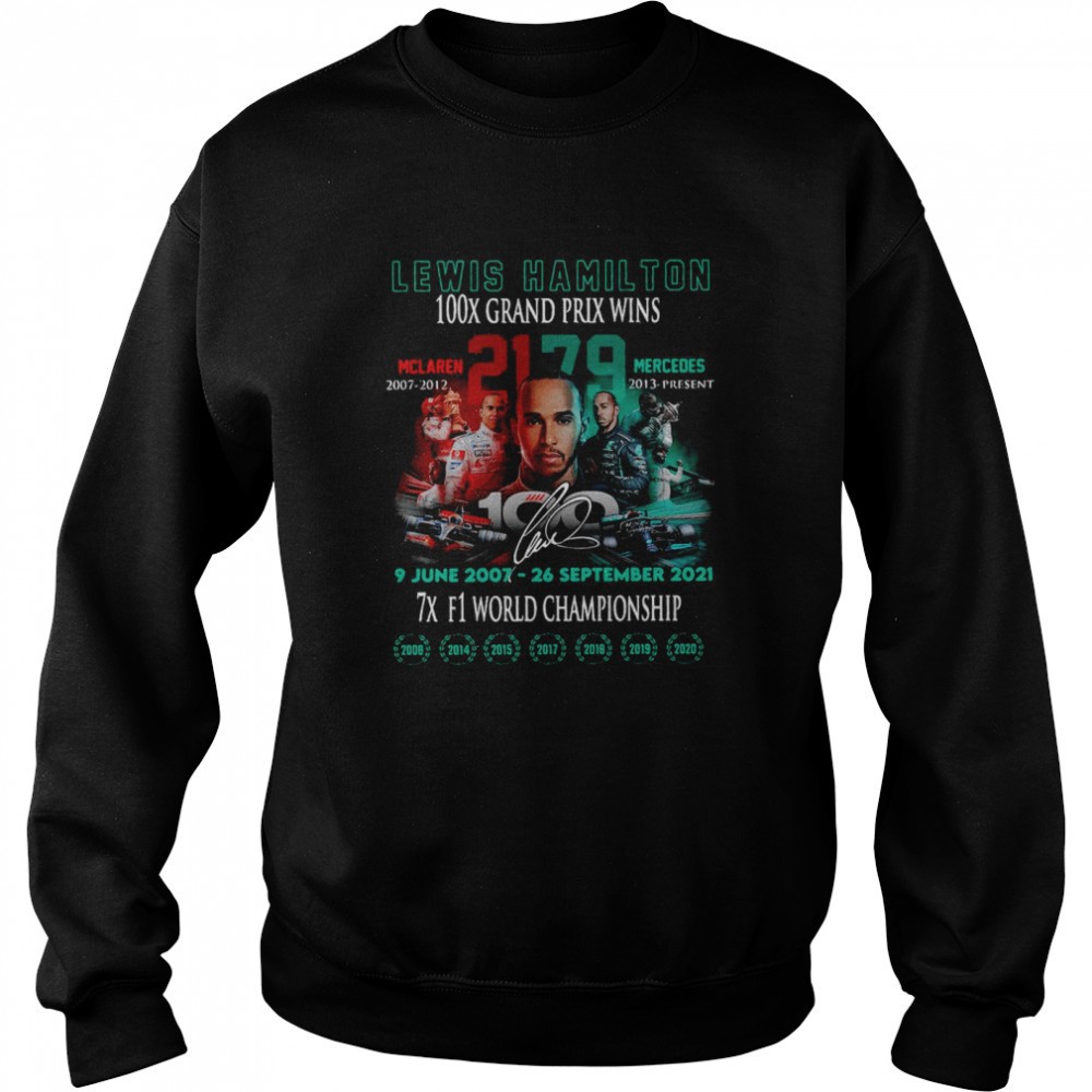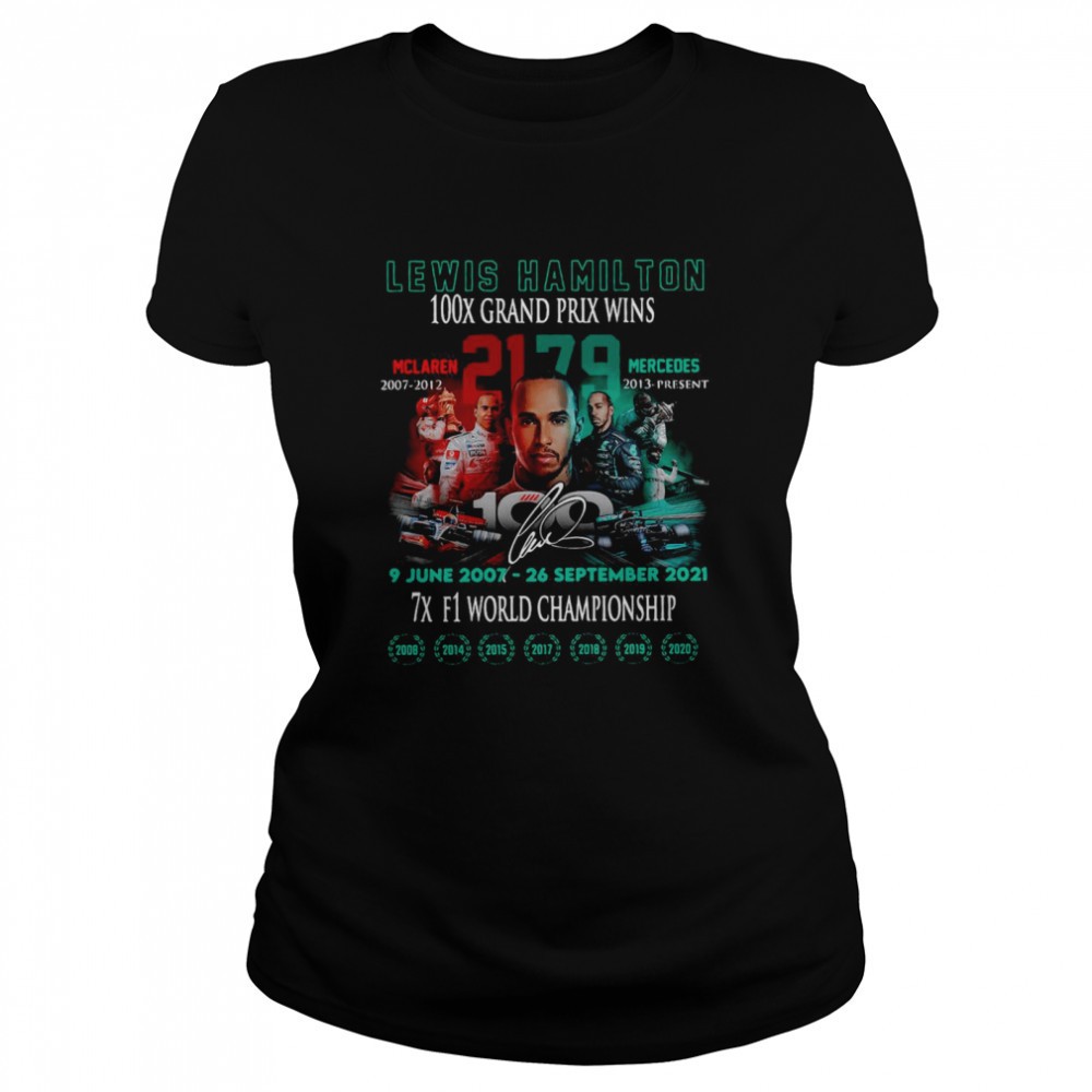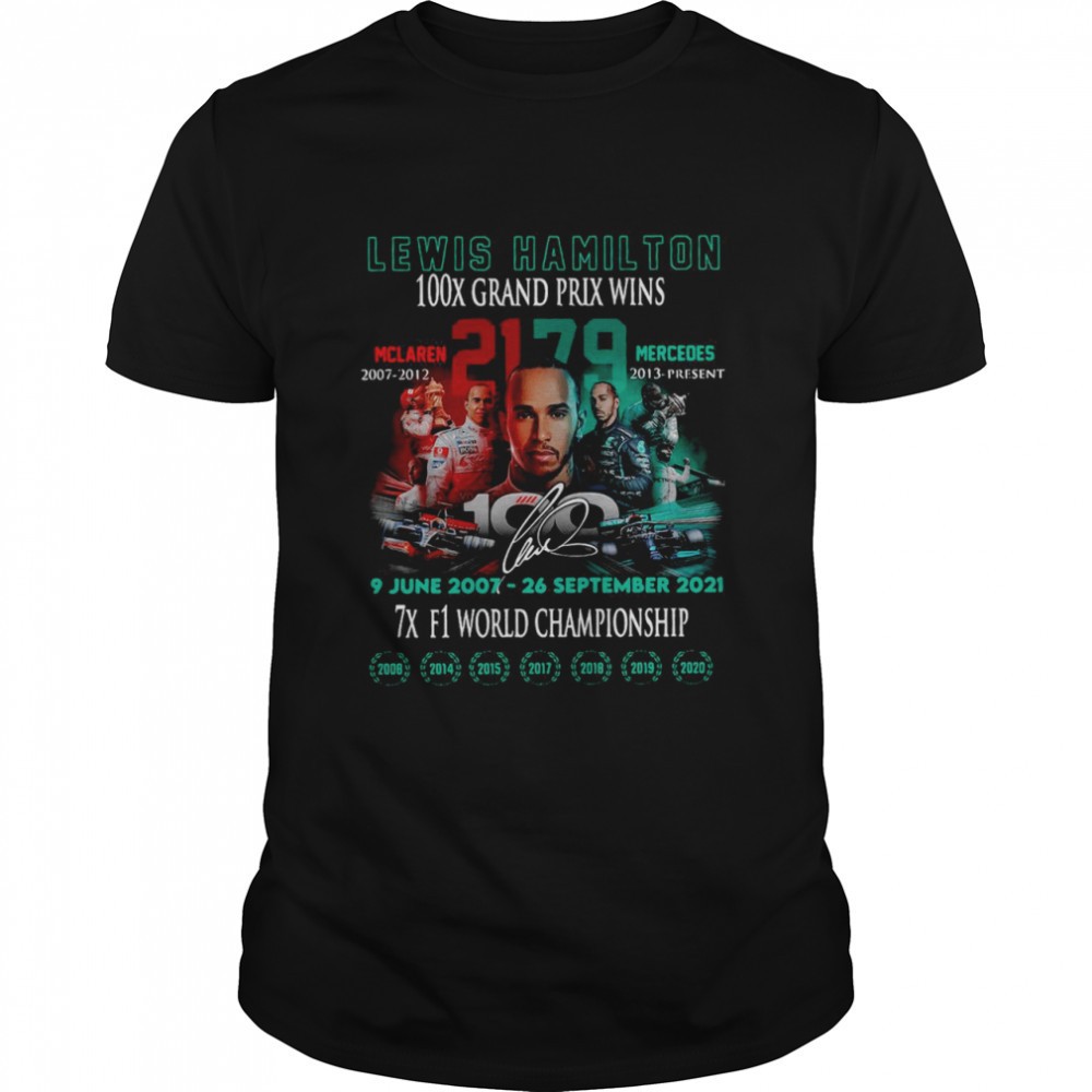 Lewis Hamilton 100x Grand Prix Wins 9 June 2007 26 September 2021 7x F1 World Championship T-shirt