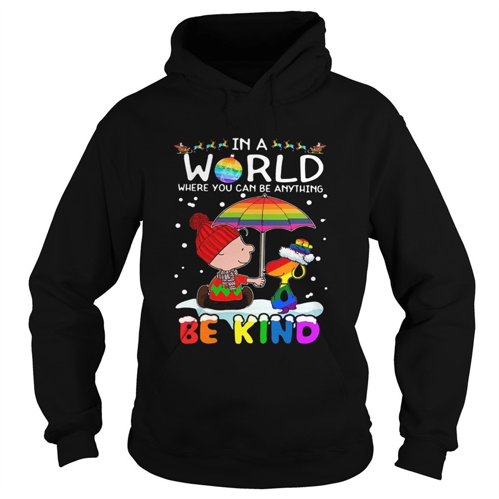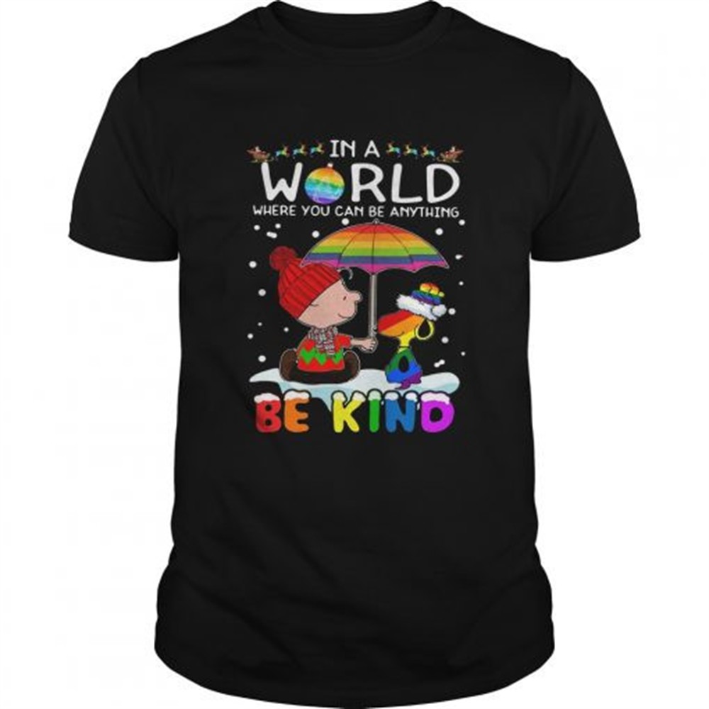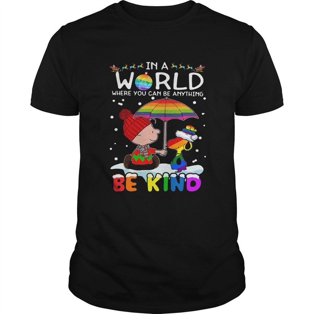 LGBT Charlie Brown And Snoopy In A World Where You Can Be Anything Be Kind Christmas shirt