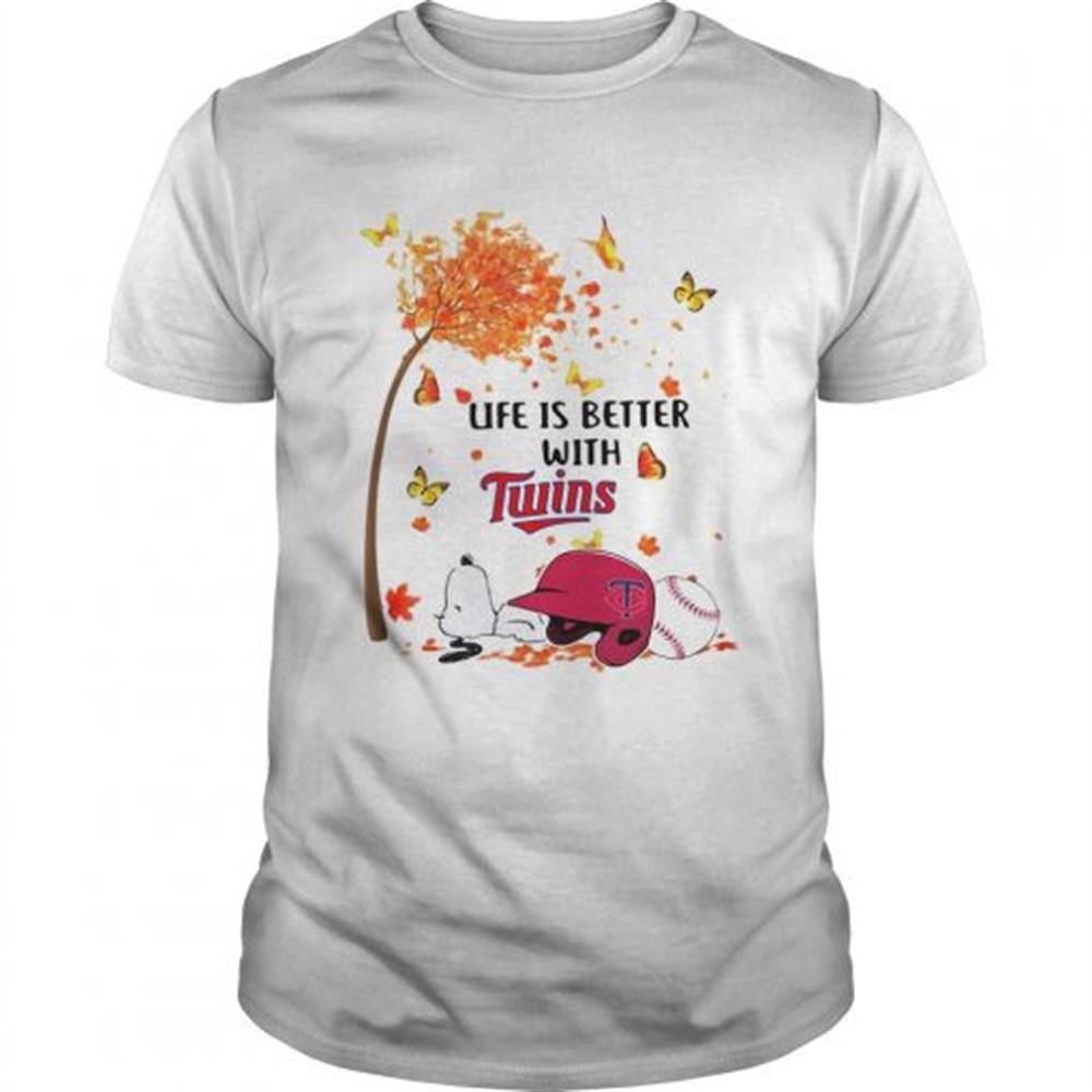 Life is better with Minnesota Twins Snoopy sleeping under autumn tree shirt
