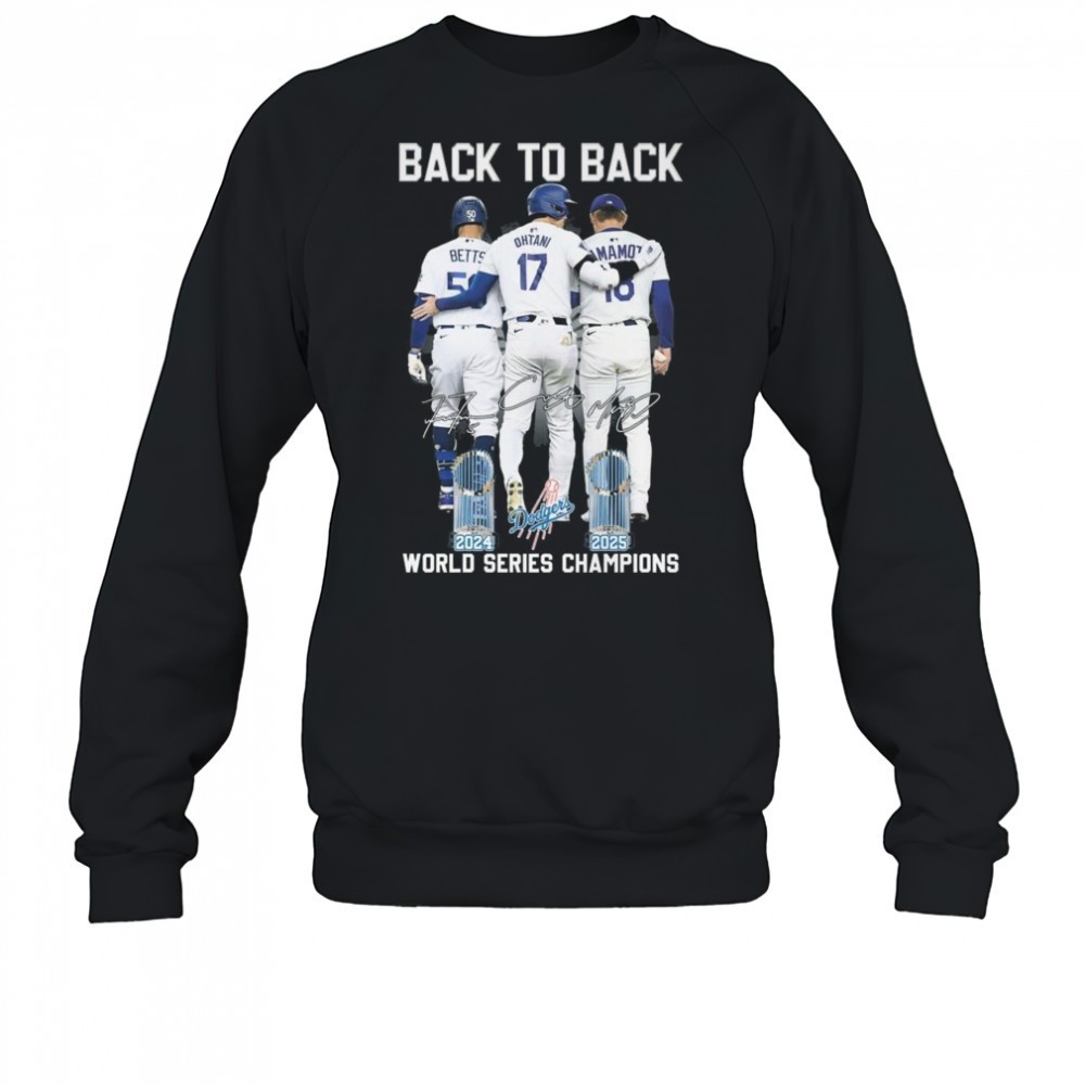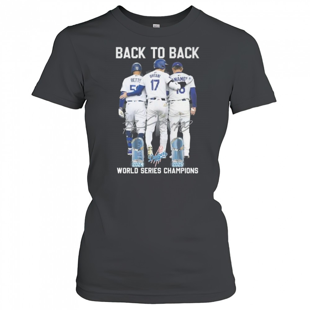 Los Angeles Dodgers Back To Back Betts Ohtani Yamamoto 2024-2025 World Series Champions Signatures Shirt