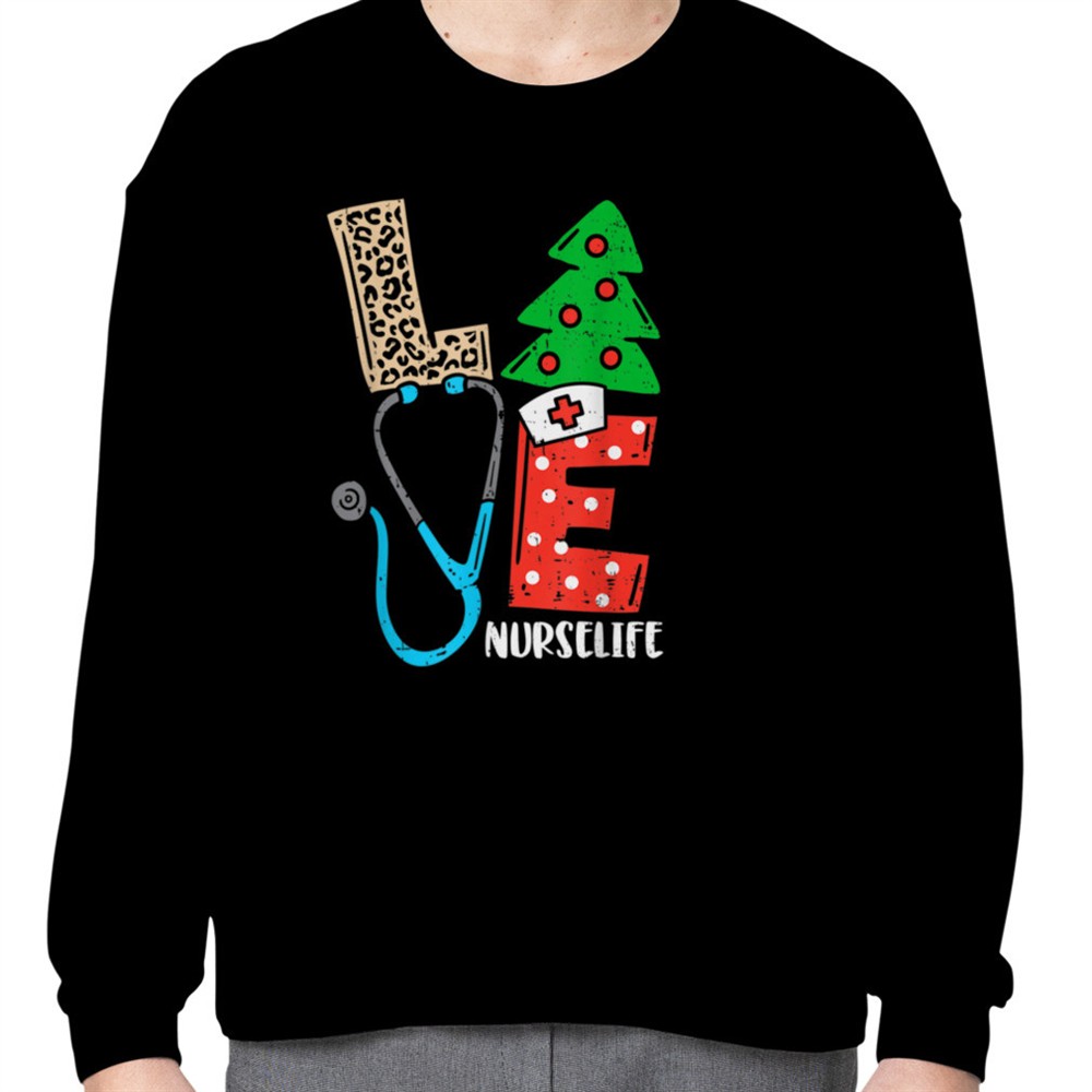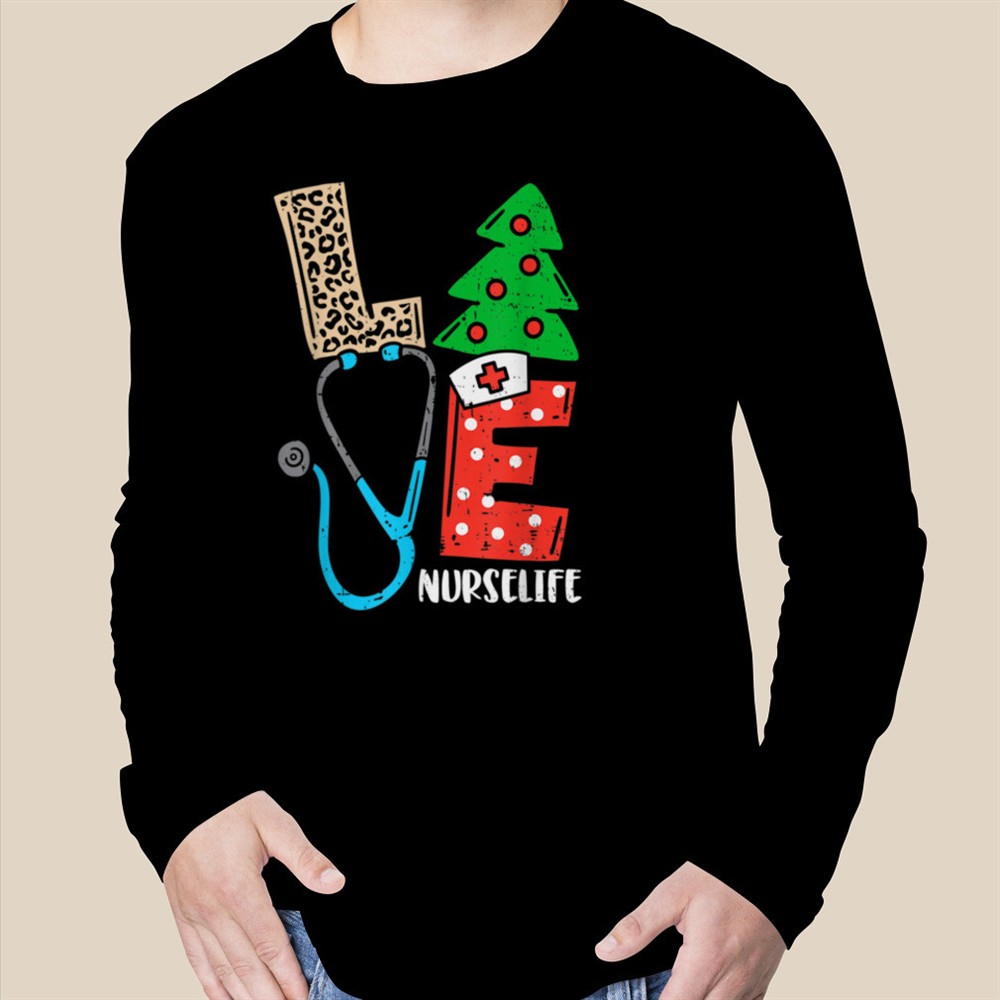 Love Stethoscope Snowflake Nurse Life Christmas Scrub Xmas T-Shirt B0BM9S1LX1