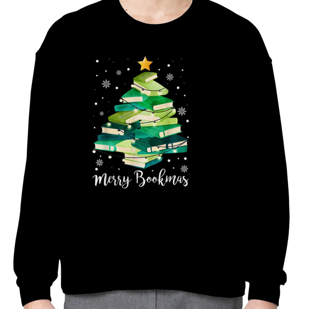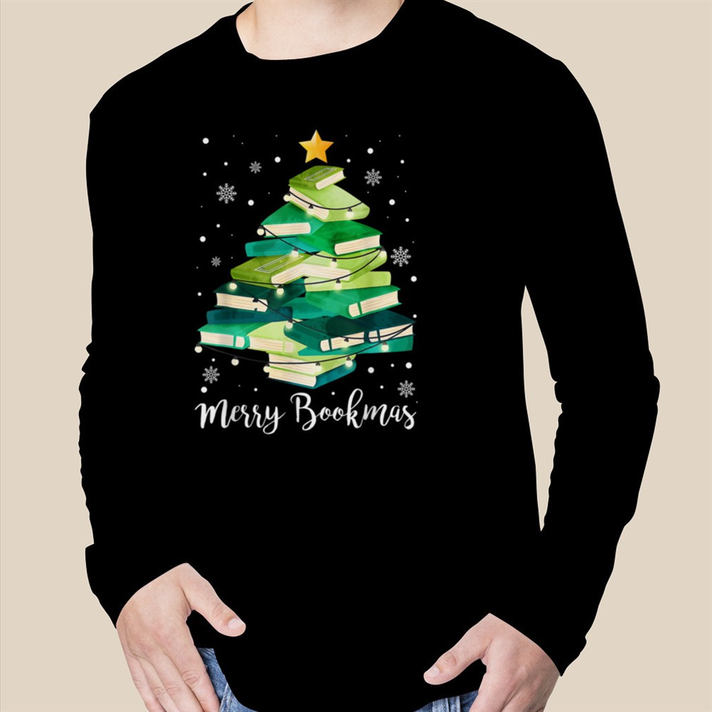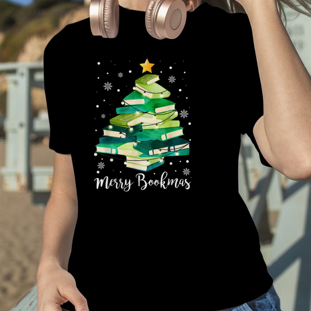 Merry Bookmas Books Pine Tree Funny Reading Lover Christmas T-Shirt B0BM9TXHLX
