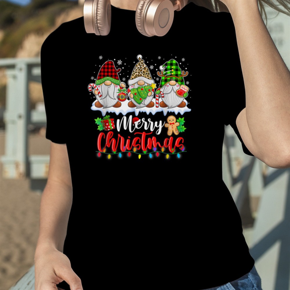 Merry Christmas Gnomes Xmas Lights Red Plaid Family Pajamas T-Shirt B0BMB55XFK