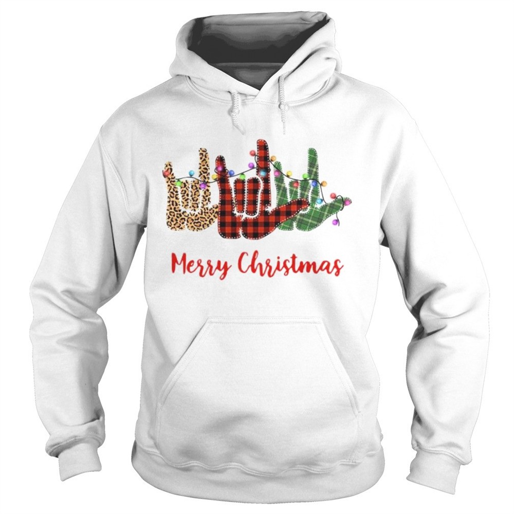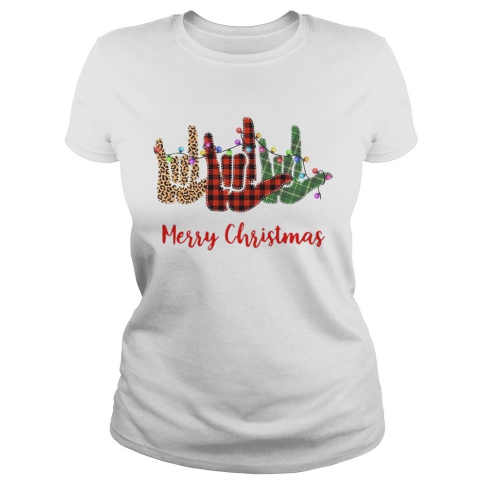 Merry christmas hand sign language leopard shirt