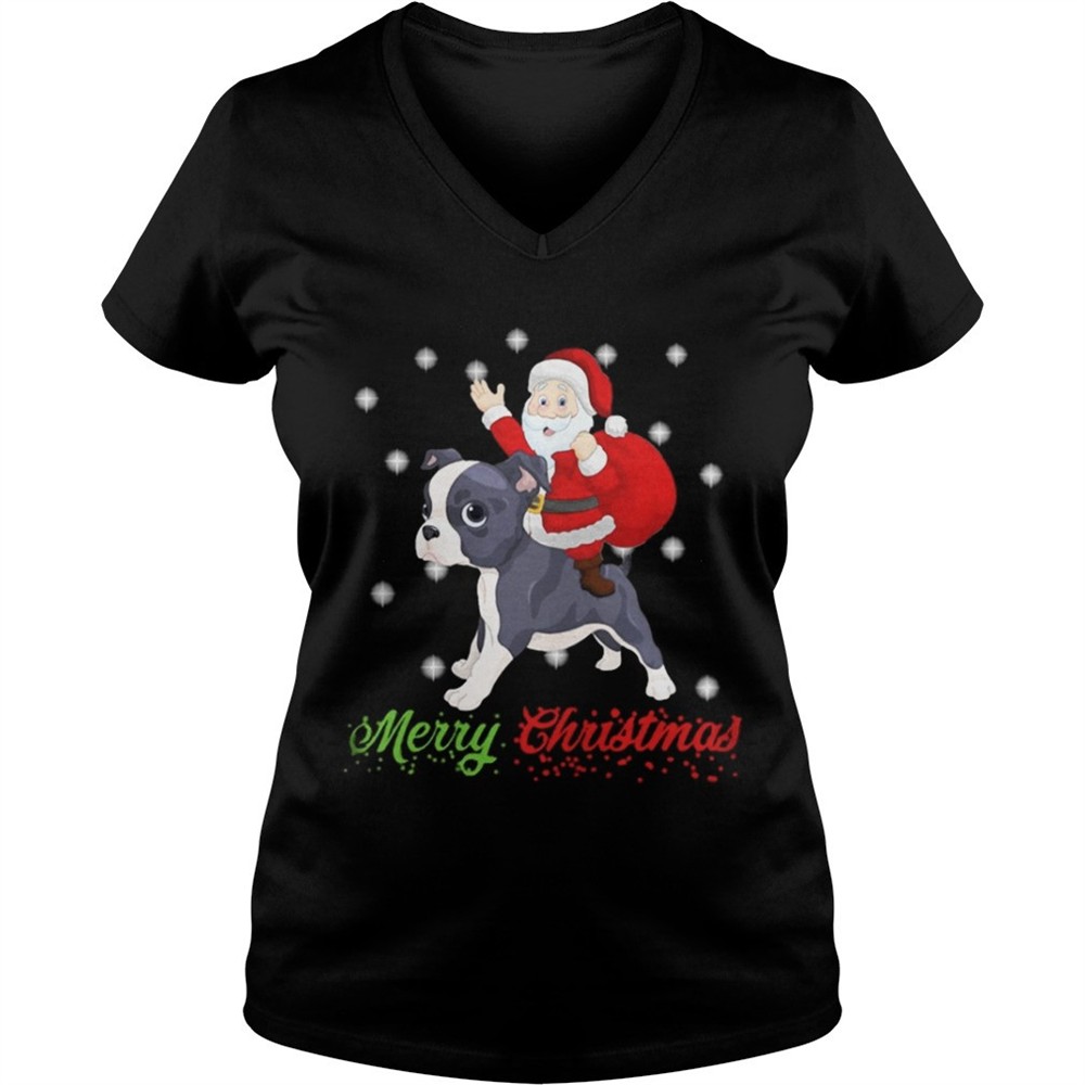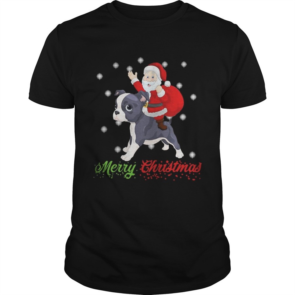 Merry Christmas Santa Claus Riding Boston Terrier Sweatshirt