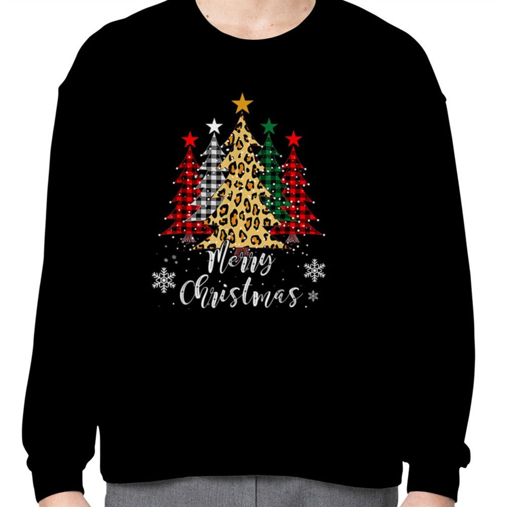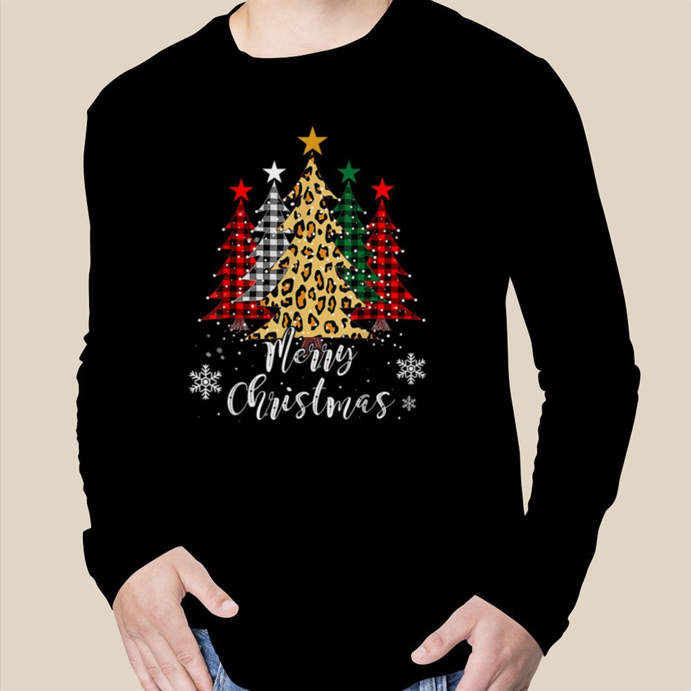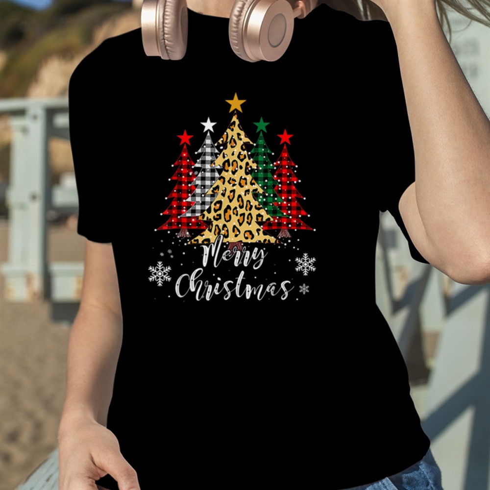 Merry Christmas Tree Buffalo Plaid Red White Green Light Top T-Shirt B0BM9GFFN7