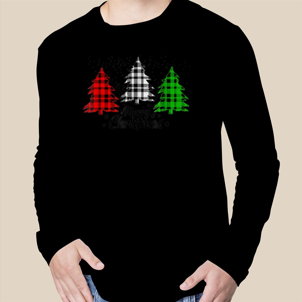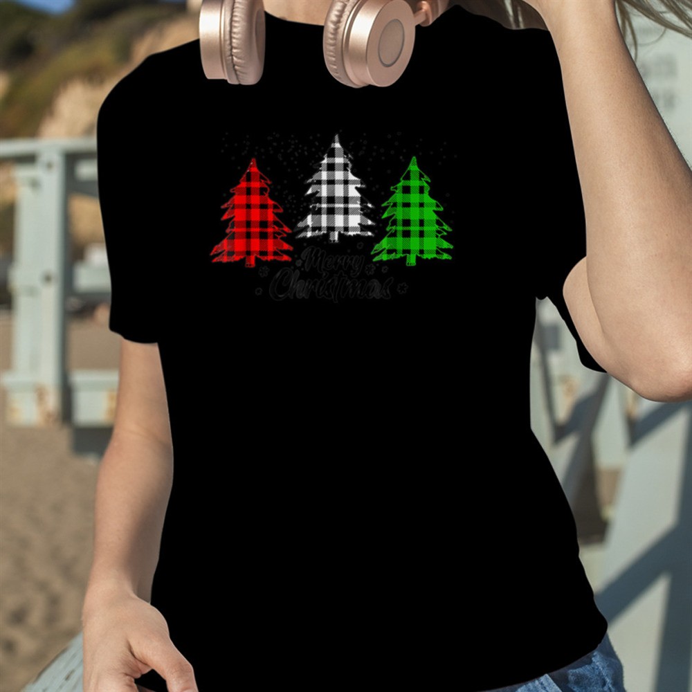 Merry Christmas Tree Buffalo Plaid Red White Green Light Top T-Shirt B0BM9NDCQJ