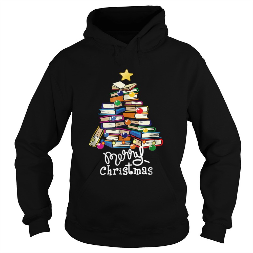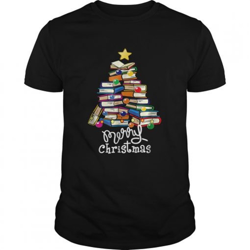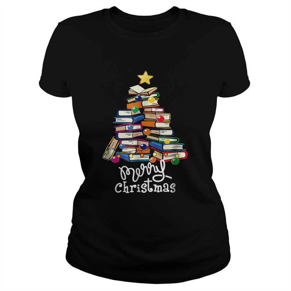 Merry Christmas Tree Love reading books Librarian nerd TShirt