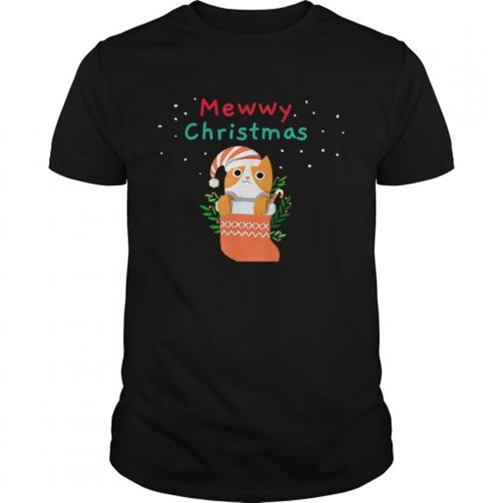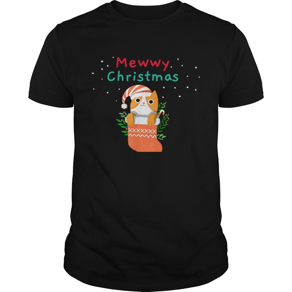 Mewwy Christmas Funny Ginger Tuxie Kitty Cat Lovers Holiday TShirt
