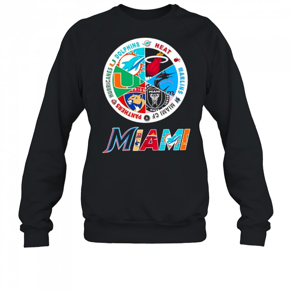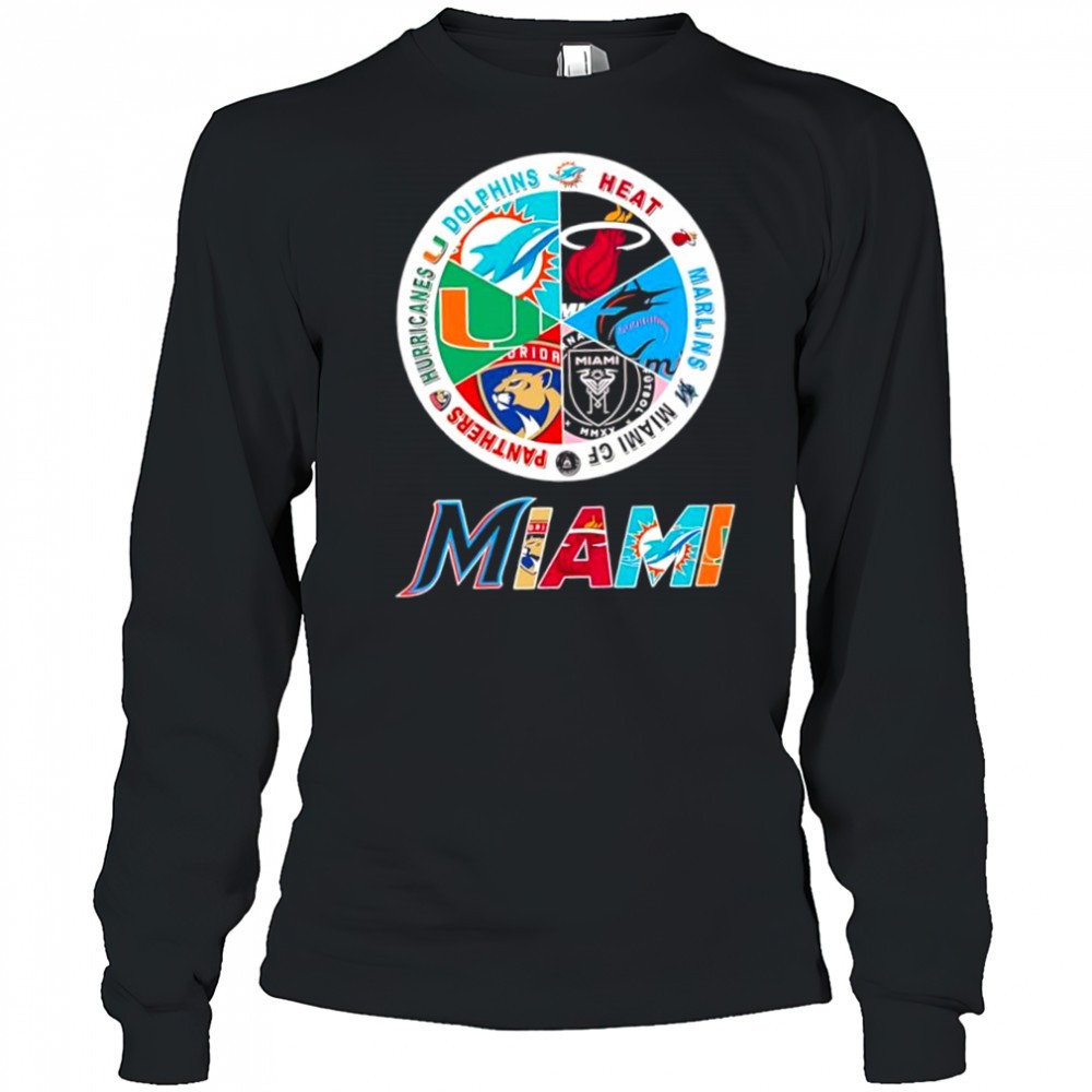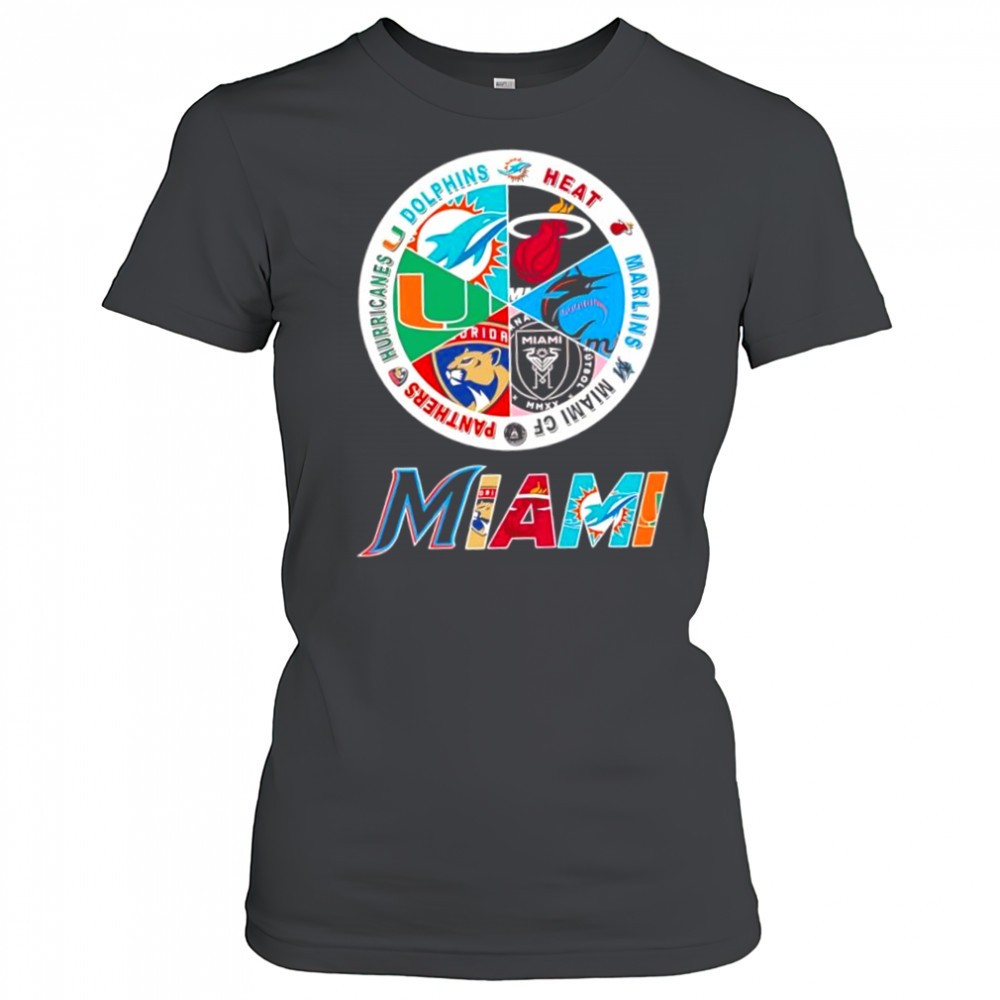 Miami area Dolphins x Heat x Marlins x Florida Panthers x Hurricanes x Inter Miami CF logo shirt