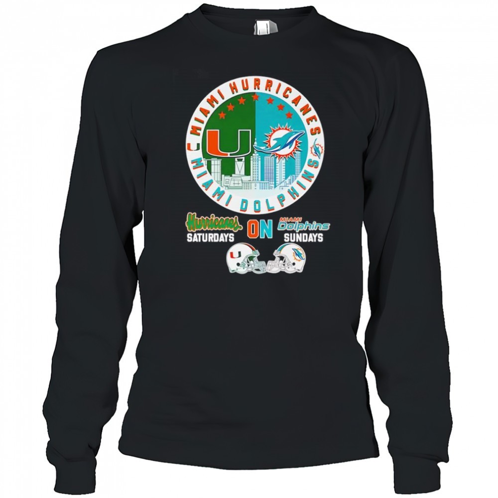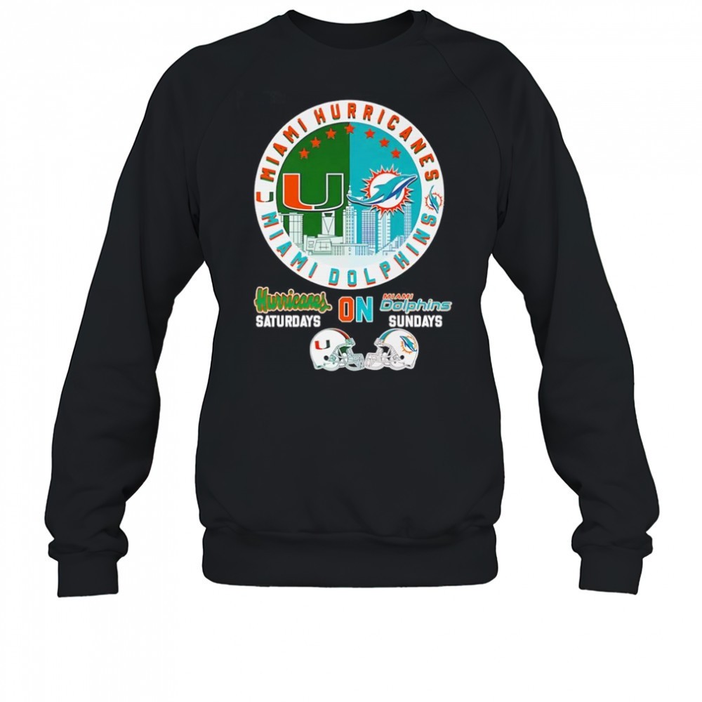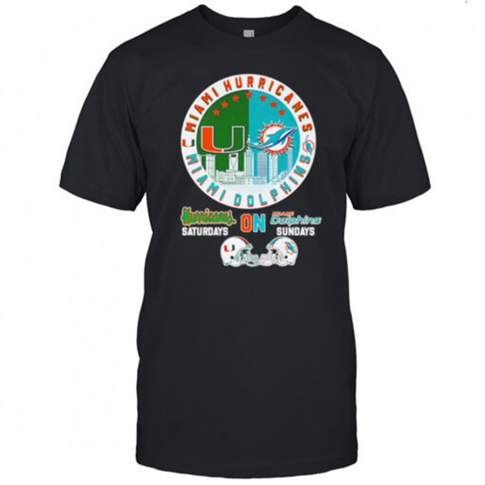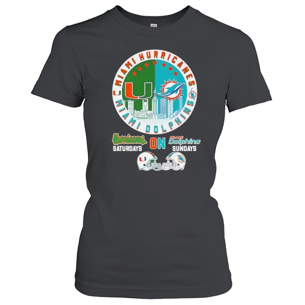 Miami Hurricanes on Saturdays Dolphins on Sundays skyline shirt