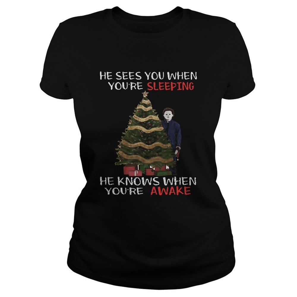 Michael Myers Christmas Tree He Knows When Youre Awake Christmas shirt