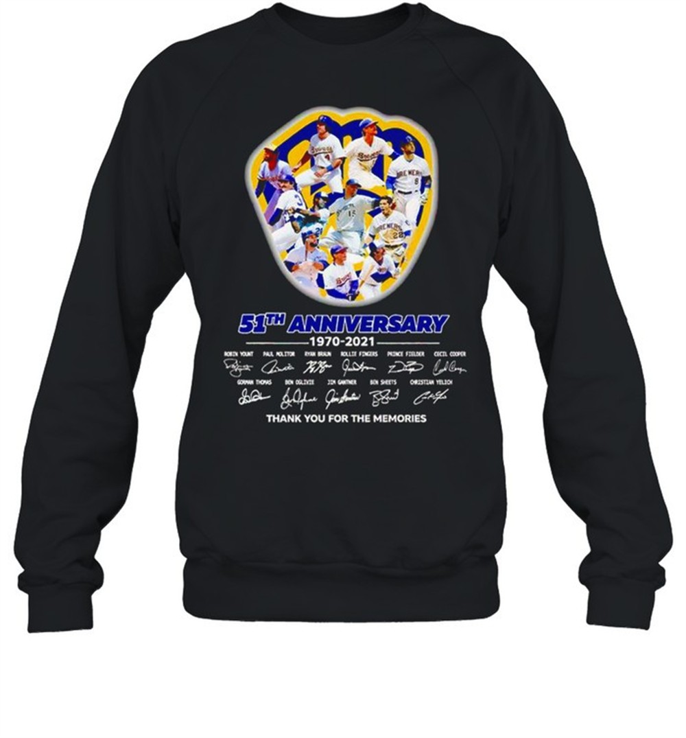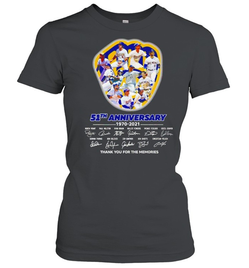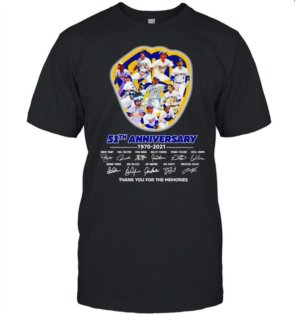 Milwaukee Brewers 51th Anniversary 1970 2021 Signatures Thank You For The Memories Signatures Shirt
