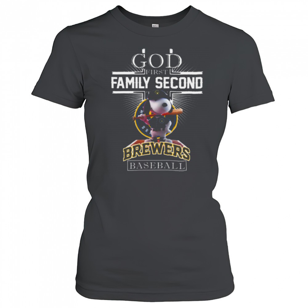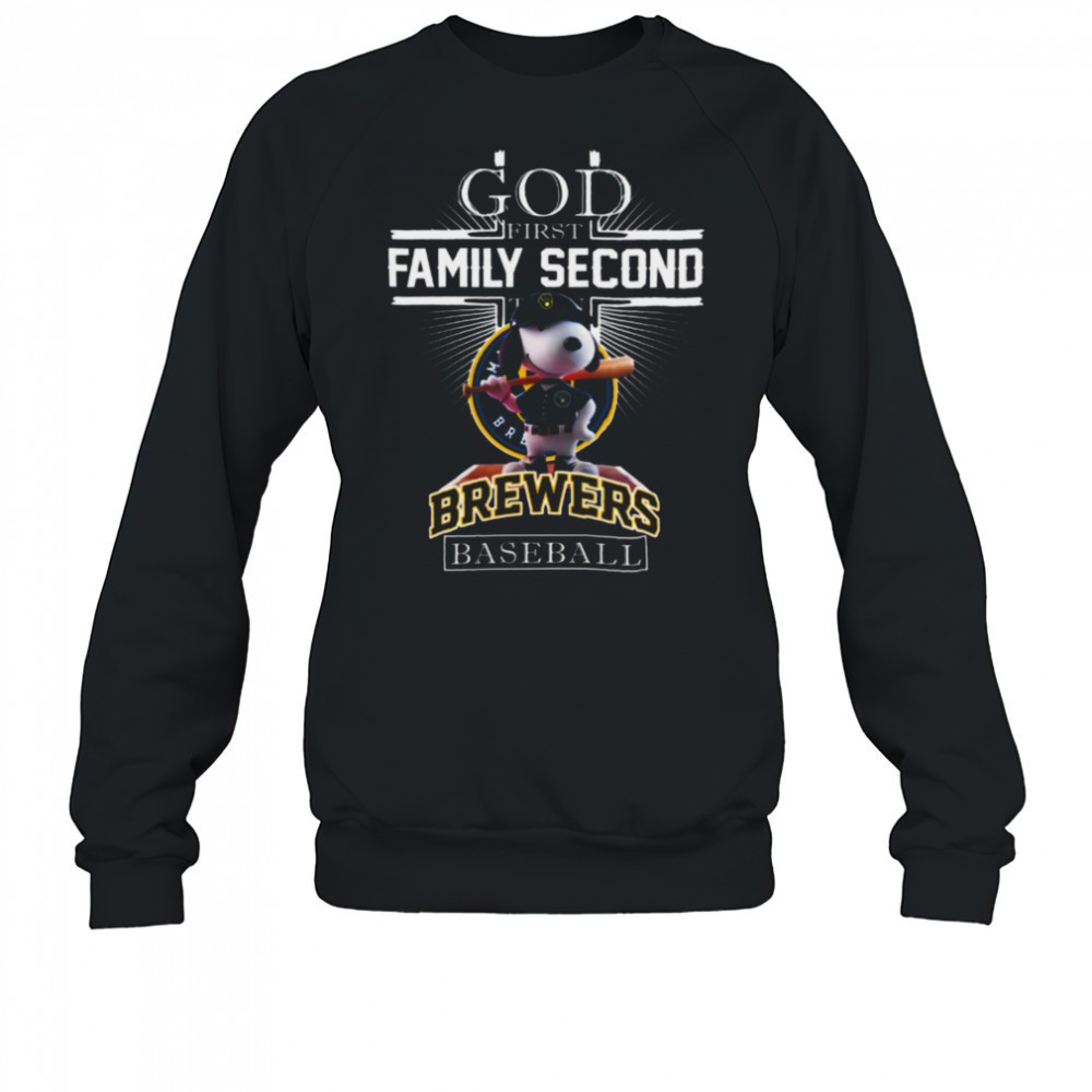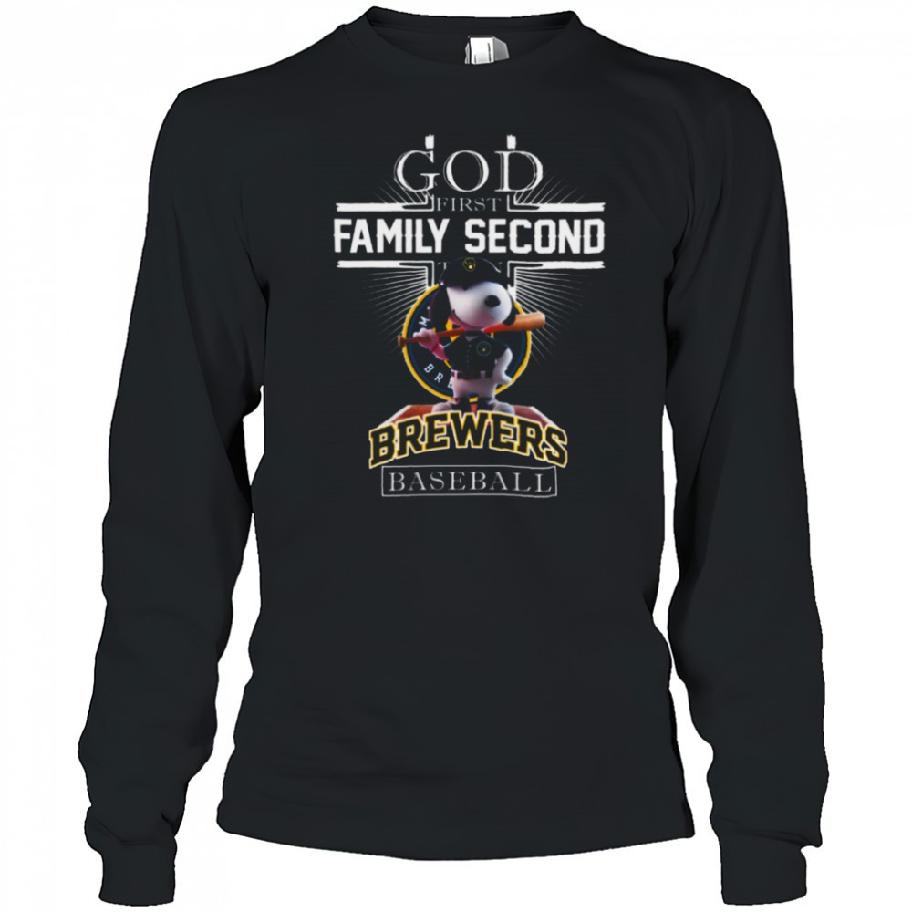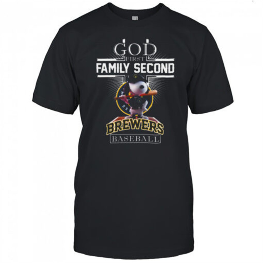 Milwaukee Brewers Shop Snoopy God First Family Second Then Milwaukee Brewers Baseball T Shirt