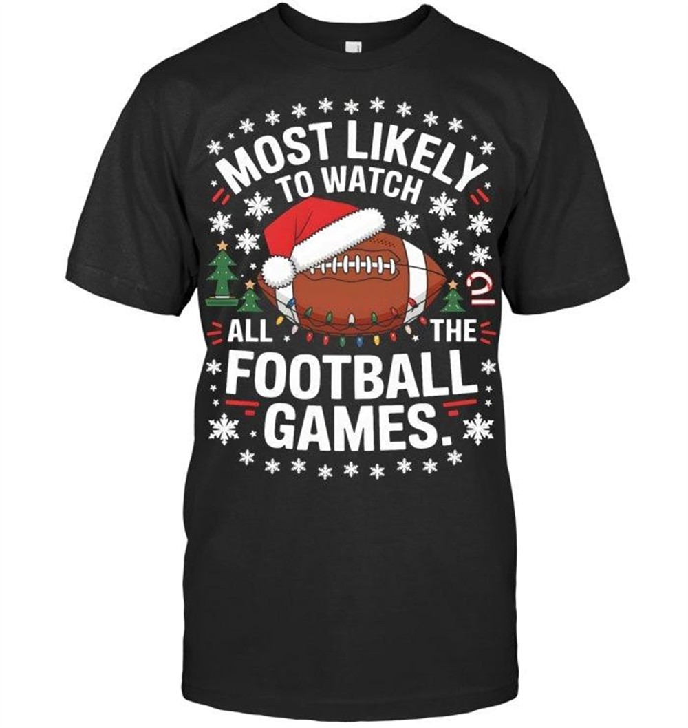 Most Likely To Watch All The Football Games Christmas Family T Shirt