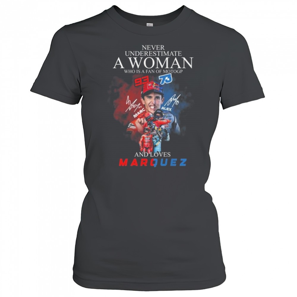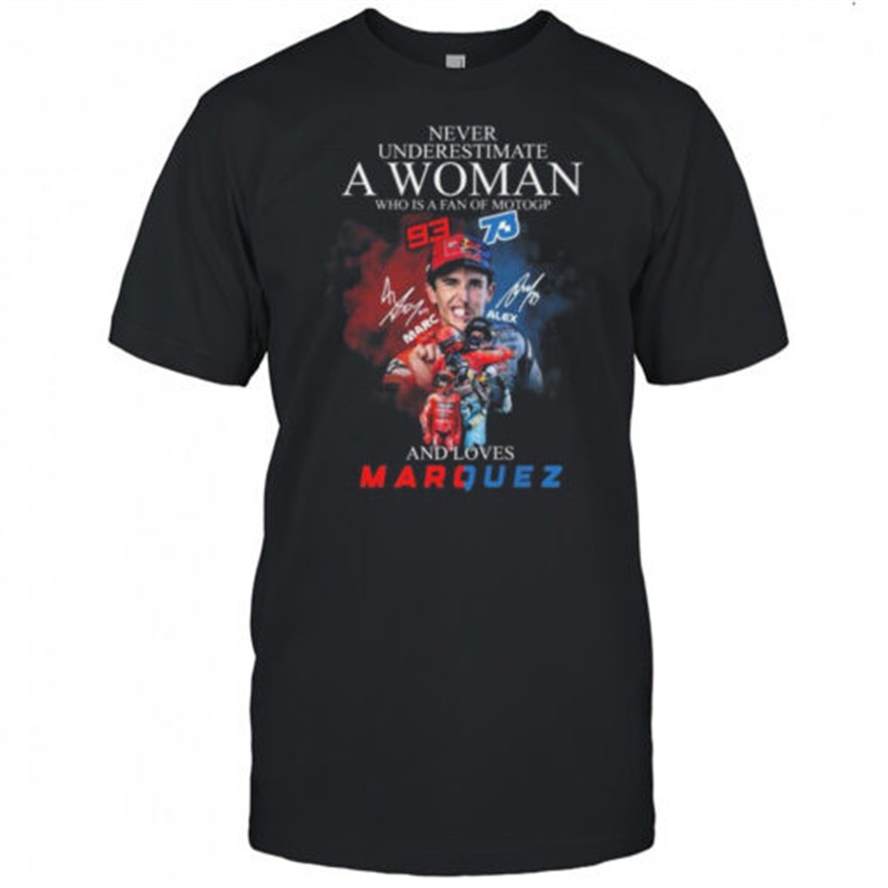 Never Underestimate A Woman Who Is A Fan Of Motogp Marc Marquez x Alex Marquez Signatures 2025 Shirt